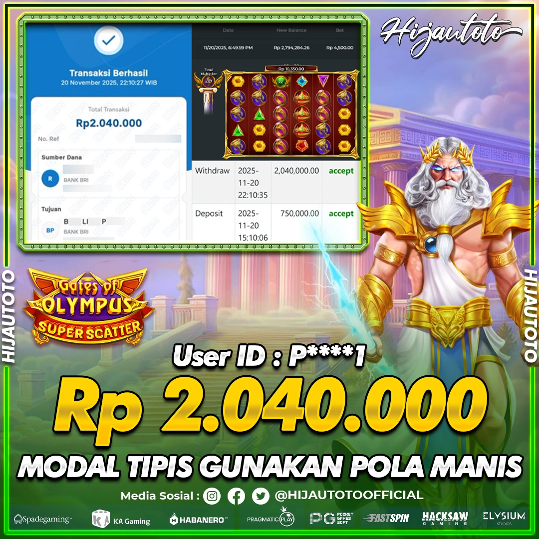 Selamat datang di HIJAUTOTO, tempatnya seru-seruan dan cuan besar! Mulai main cukup dengan modal Rp5.000 aja, taruhan super murah dari Rp100 perak! Mau main slot yang penuh warna? Atau togel dari 20 pasaran paling hits? Atau mungkin tembak ikan yang bikin deg-degan? Tenang, ada juga taruhan bola, sabung ayam, dan live casino yang bikin suasana makin hidup! Daftar sekarang dan dapetin bonus new member 100% langsung, biar modalmu makin tebal. Deposit gampang banget, bisa pakai QRIS, dan kalau butuh bantuan, customer service kita siap 24 jam nonstop. Jadi, tunggu apa lagi? Yuk, gabung dan bawa pulang kemenangannya cuma di HIJAUTOTO!