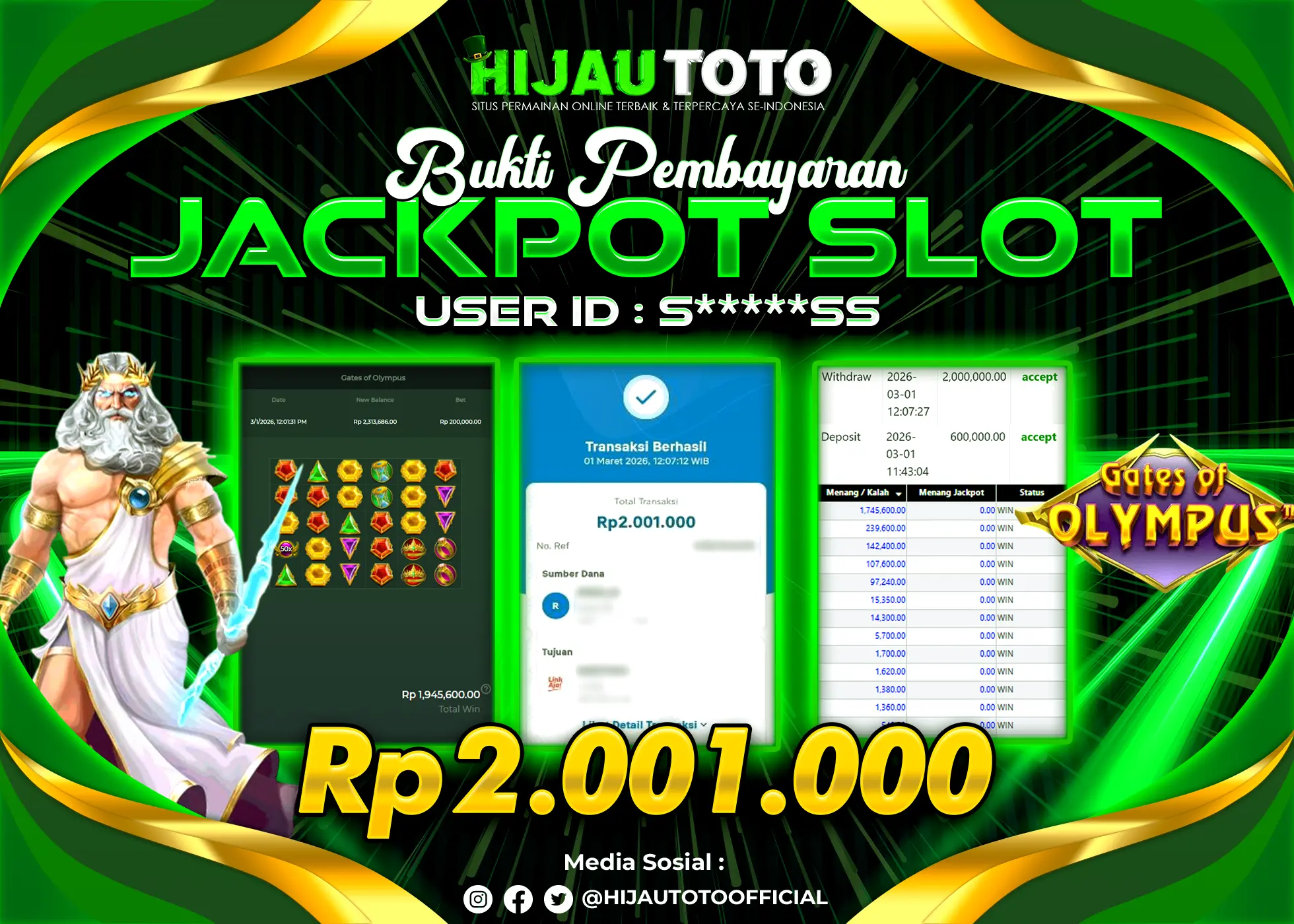 Selamat datang di HIJAUTOTO, tempatnya seru-seruan dan cuan besar! Mulai main cukup dengan modal Rp5.000 aja, taruhan super murah dari Rp100 perak! Mau main slot yang penuh warna? Atau togel dari 20 pasaran paling hits? Atau mungkin tembak ikan yang bikin deg-degan? Tenang, ada juga taruhan bola, sabung ayam, dan live casino yang bikin suasana makin hidup! Daftar sekarang dan dapetin bonus new member 100% langsung, biar modalmu makin tebal. Deposit gampang banget, bisa pakai QRIS, dan kalau butuh bantuan, customer service kita siap 24 jam nonstop. Jadi, tunggu apa lagi? Yuk, gabung dan bawa pulang kemenangannya cuma di HIJAUTOTO!