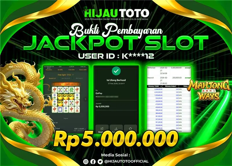 Selamat datang di HIJAUTOTO, tempatnya seru-seruan dan cuan besar! Mulai main cukup dengan modal Rp5.000 aja, taruhan super murah dari Rp100 perak! Mau main slot yang penuh warna? Atau togel dari 20 pasaran paling hits? Atau mungkin tembak ikan yang bikin deg-degan? Tenang, ada juga taruhan bola, sabung ayam, dan live casino yang bikin suasana makin hidup! Daftar sekarang dan dapetin bonus new member 100% langsung, biar modalmu makin tebal. Deposit gampang banget, bisa pakai QRIS, dan kalau butuh bantuan, customer service kita siap 24 jam nonstop. Jadi, tunggu apa lagi? Yuk, gabung dan bawa pulang kemenangannya cuma di HIJAUTOTO!