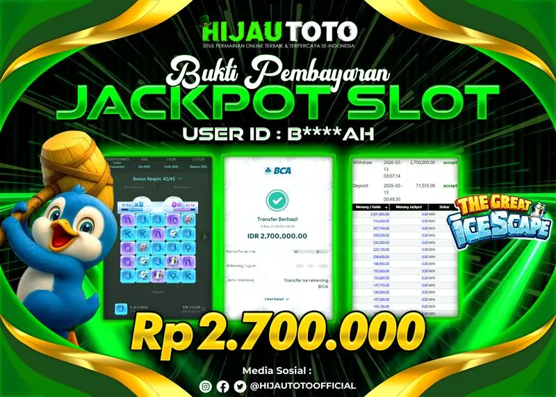 Selamat datang di HIJAUTOTO, tempatnya seru-seruan dan cuan besar! Mulai main cukup dengan modal Rp5.000 aja, taruhan super murah dari Rp100 perak! Mau main slot yang penuh warna? Atau togel dari 20 pasaran paling hits? Atau mungkin tembak ikan yang bikin deg-degan? Tenang, ada juga taruhan bola, sabung ayam, dan live casino yang bikin suasana makin hidup! Daftar sekarang dan dapetin bonus new member 100% langsung, biar modalmu makin tebal. Deposit gampang banget, bisa pakai QRIS, dan kalau butuh bantuan, customer service kita siap 24 jam nonstop. Jadi, tunggu apa lagi? Yuk, gabung dan bawa pulang kemenangannya cuma di HIJAUTOTO!
