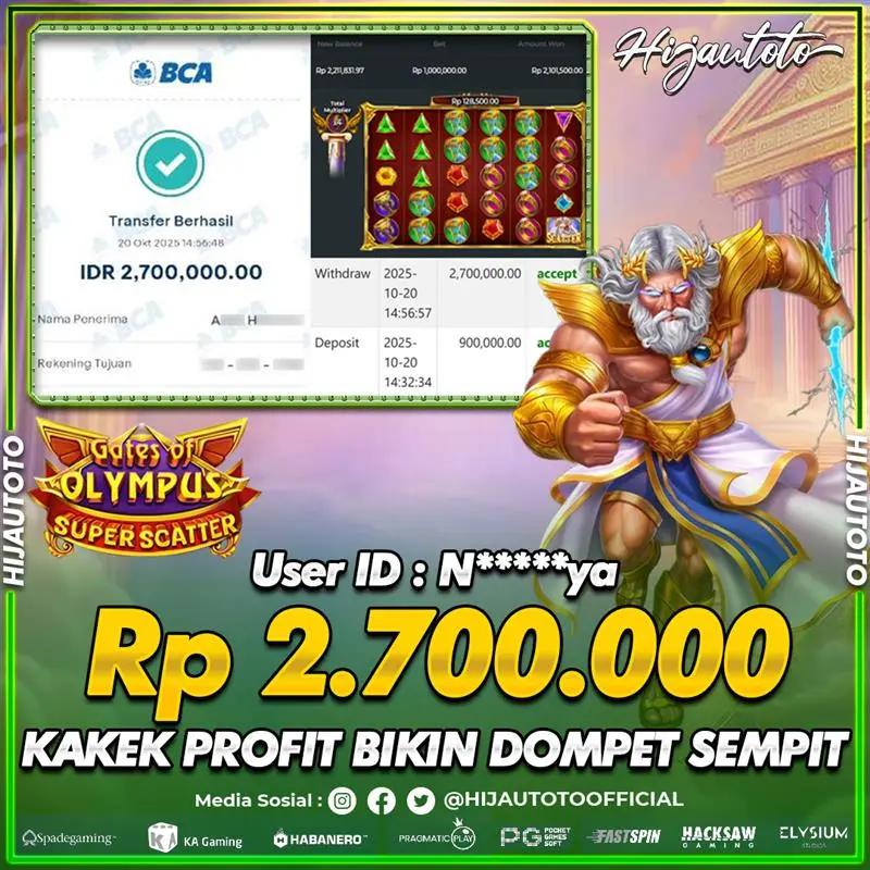 Selamat Kepada Member HIJAUTOTO KA*********0 Telah Jackpot Di SLOT GATES OF OLYMPUS SUPER SCATTER