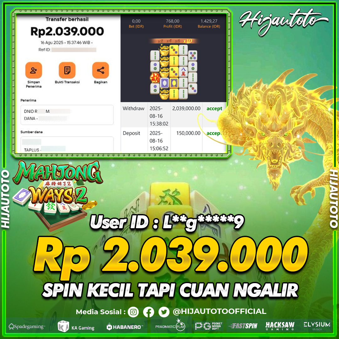 Selamat datang di HIJAUTOTO, tempatnya seru-seruan dan cuan besar! Mulai main cukup dengan modal Rp5.000 aja, taruhan super murah dari Rp100 perak! Mau main slot yang penuh warna? Atau togel dari 20 pasaran paling hits? Atau mungkin tembak ikan yang bikin deg-degan? Tenang, ada juga taruhan bola, sabung ayam, dan live casino yang bikin suasana makin hidup! Daftar sekarang dan dapetin bonus new member 100% langsung, biar modalmu makin tebal. Deposit gampang banget, bisa pakai QRIS, dan kalau butuh bantuan, customer service kita siap 24 jam nonstop. Jadi, tunggu apa lagi? Yuk, gabung dan bawa pulang kemenangannya cuma di HIJAUTOTO!