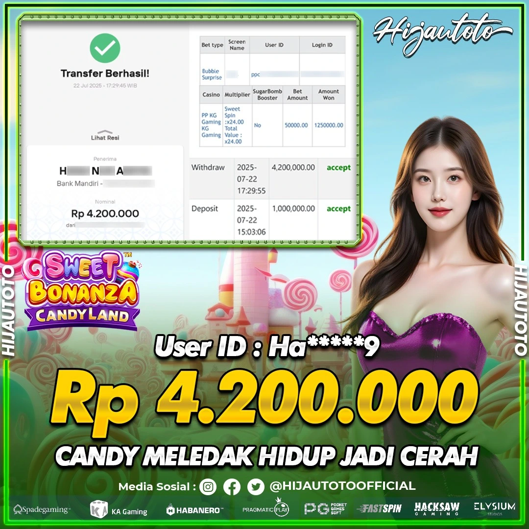 Selamat Kepada Member HIJAUTOTO HA*****9 Telah Jackpot Di LIVE CASINO SWEET BONANZA CANDYLAND