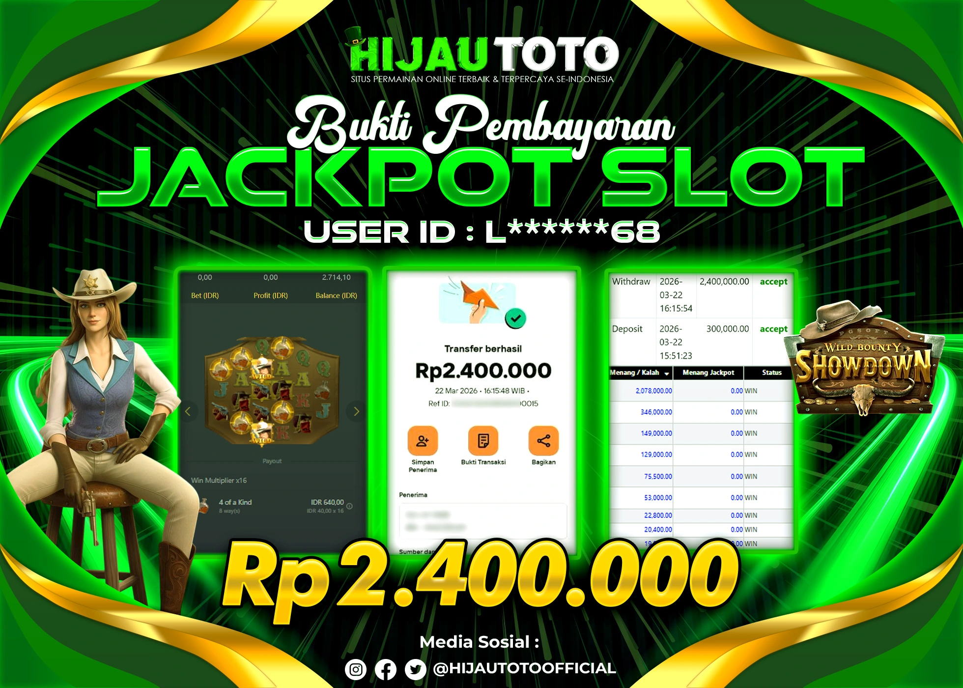 Selamat Kepada Member HIJAUTOTO L******68 Telah Jackpot Di SLOT WILD BOUNTY SHOWDOWN