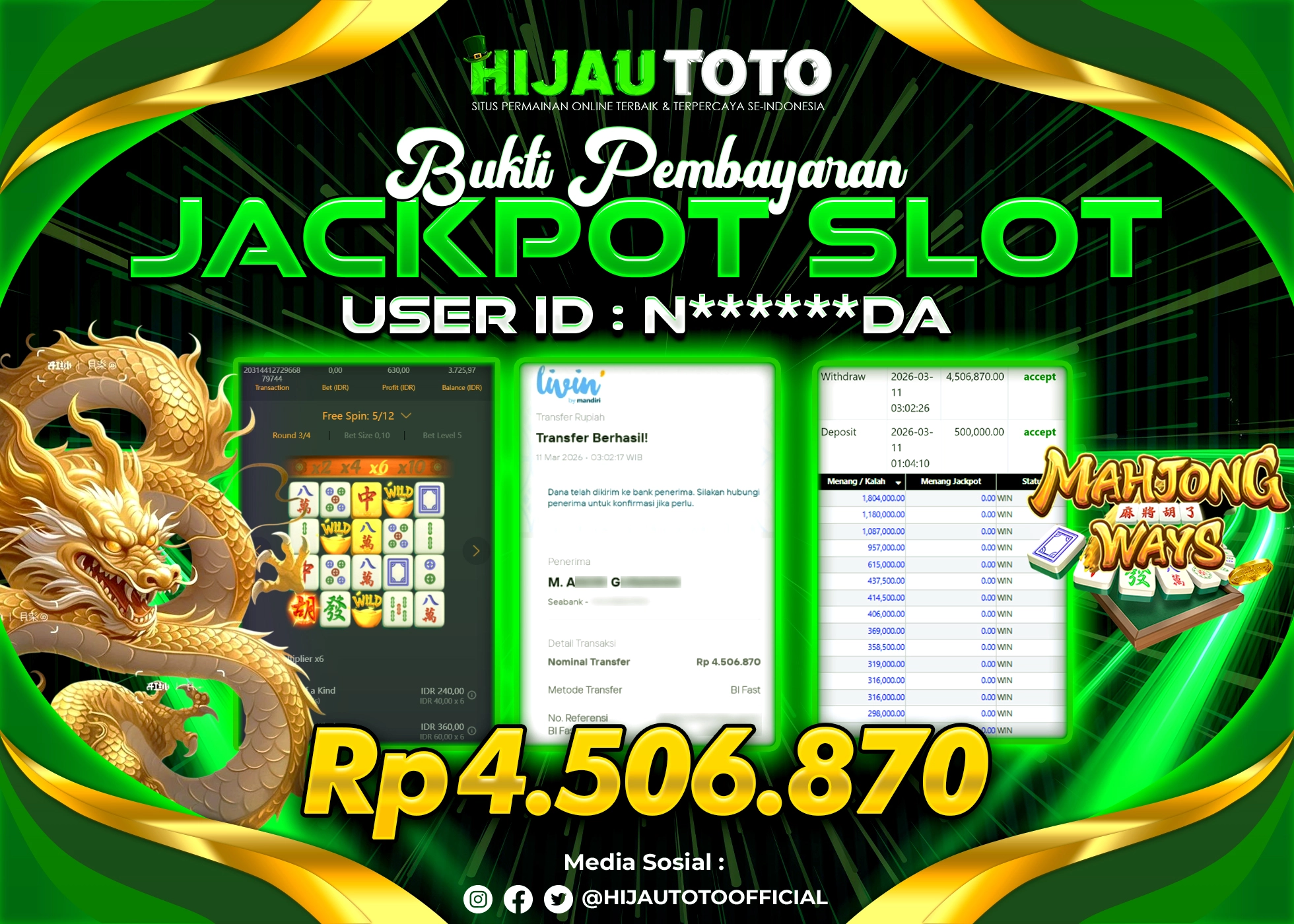 Selamat Kepada Member HIJAUTOTO N******DA Telah Jackpot Di SLOT MAHJONG WAYS