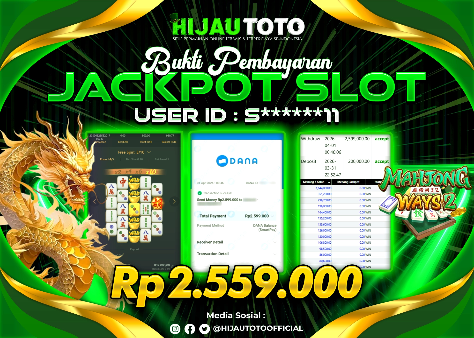 Bergabung dengan HIJAUTOTO sangat mudah dan cepat. Cukup lakukan pendaftaran dengan data lengkap, lakukan deposit minimal Rp5.000 melalui berbagai metode termasuk QRIS, dan mulai bertaruh dengan minimal taruhan Rp100. Dapatkan juga bonus new member 100% untuk modal bermain lebih besar.