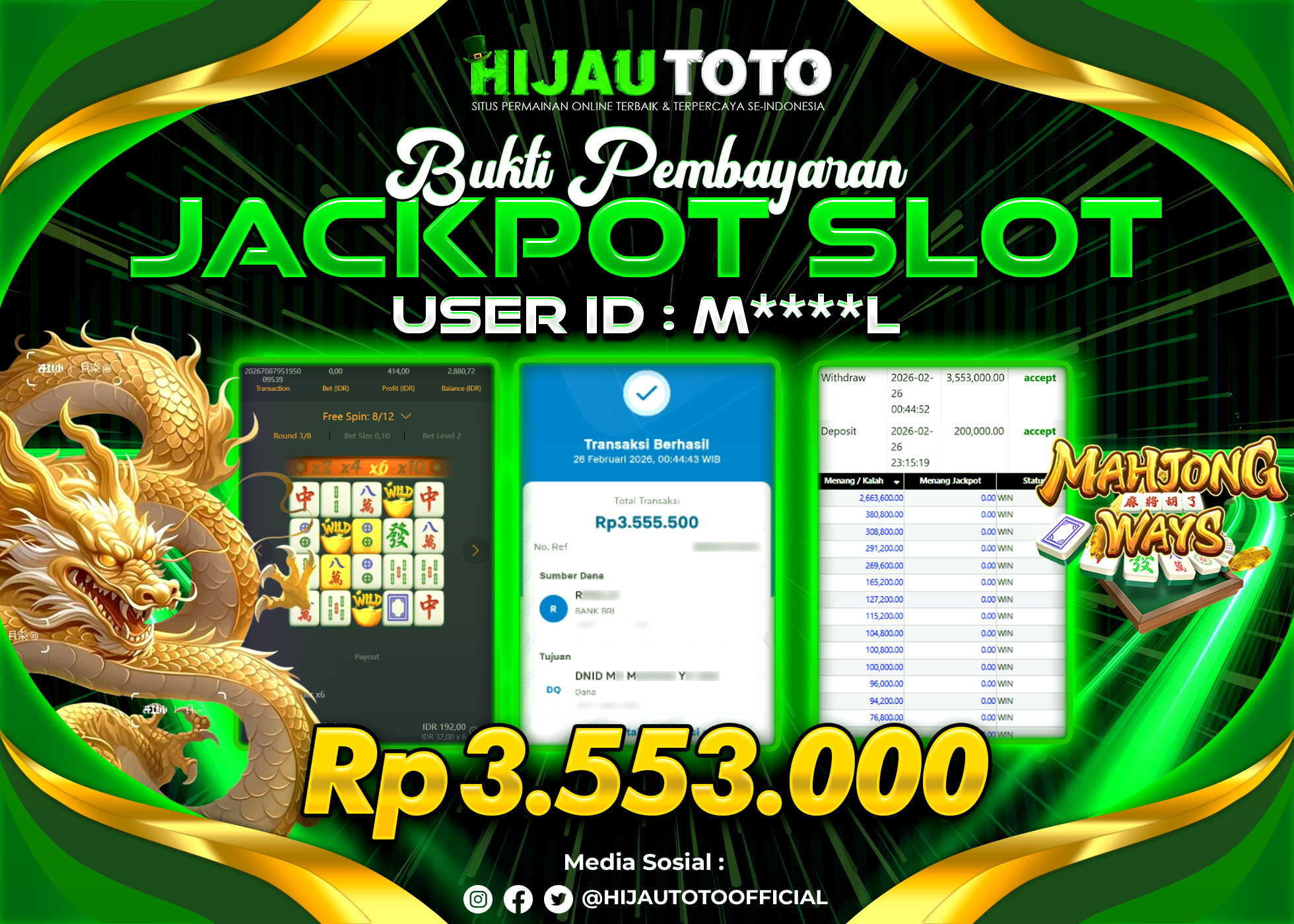 Bergabung dengan HIJAUTOTO sangat mudah dan cepat. Cukup lakukan pendaftaran dengan data lengkap, lakukan deposit minimal Rp5.000 melalui berbagai metode termasuk QRIS, dan mulai bertaruh dengan minimal taruhan Rp100. Dapatkan juga bonus new member 100% untuk modal bermain lebih besar.