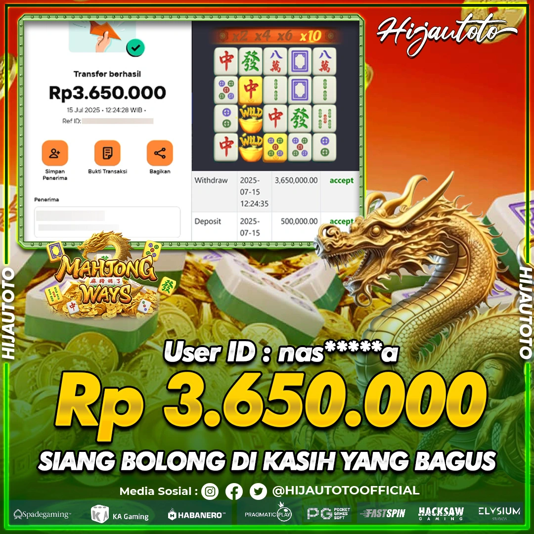 Selamat datang di HIJAUTOTO, tempatnya seru-seruan dan cuan besar! Mulai main cukup dengan modal Rp5.000 aja, taruhan super murah dari Rp100 perak! Mau main slot yang penuh warna? Atau togel dari 20 pasaran paling hits? Atau mungkin tembak ikan yang bikin deg-degan? Tenang, ada juga taruhan bola, sabung ayam, dan live casino yang bikin suasana makin hidup! Daftar sekarang dan dapetin bonus new member 100% langsung, biar modalmu makin tebal. Deposit gampang banget, bisa pakai QRIS, dan kalau butuh bantuan, customer service kita siap 24 jam nonstop. Jadi, tunggu apa lagi? Yuk, gabung dan bawa pulang kemenangannya cuma di HIJAUTOTO!