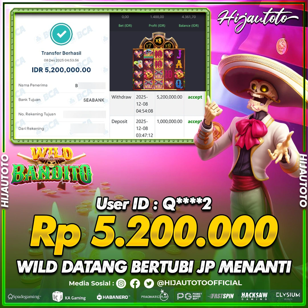Selamat datang di HIJAUTOTO, tempatnya seru-seruan dan cuan besar! Mulai main cukup dengan modal Rp5.000 aja, taruhan super murah dari Rp100 perak! Mau main slot yang penuh warna? Atau togel dari 20 pasaran paling hits? Atau mungkin tembak ikan yang bikin deg-degan? Tenang, ada juga taruhan bola, sabung ayam, dan live casino yang bikin suasana makin hidup! Daftar sekarang dan dapetin bonus new member 100% langsung, biar modalmu makin tebal. Deposit gampang banget, bisa pakai QRIS, dan kalau butuh bantuan, customer service kita siap 24 jam nonstop. Jadi, tunggu apa lagi? Yuk, gabung dan bawa pulang kemenangannya cuma di HIJAUTOTO!