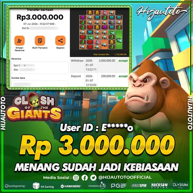 Selamat Kepada Member HIJAUTOTO E*****O Telah Jackpot Di SLOT CLOCHE OF THE GIANTS