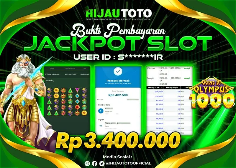 Selamat datang di HIJAUTOTO, tempatnya seru-seruan dan cuan besar! Mulai main cukup dengan modal Rp5.000 aja, taruhan super murah dari Rp100 perak! Mau main slot yang penuh warna? Atau togel dari 20 pasaran paling hits? Atau mungkin tembak ikan yang bikin deg-degan? Tenang, ada juga taruhan bola, sabung ayam, dan live casino yang bikin suasana makin hidup! Daftar sekarang dan dapetin bonus new member 100% langsung, biar modalmu makin tebal. Deposit gampang banget, bisa pakai QRIS, dan kalau butuh bantuan, customer service kita siap 24 jam nonstop. Jadi, tunggu apa lagi? Yuk, gabung dan bawa pulang kemenangannya cuma di HIJAUTOTO!