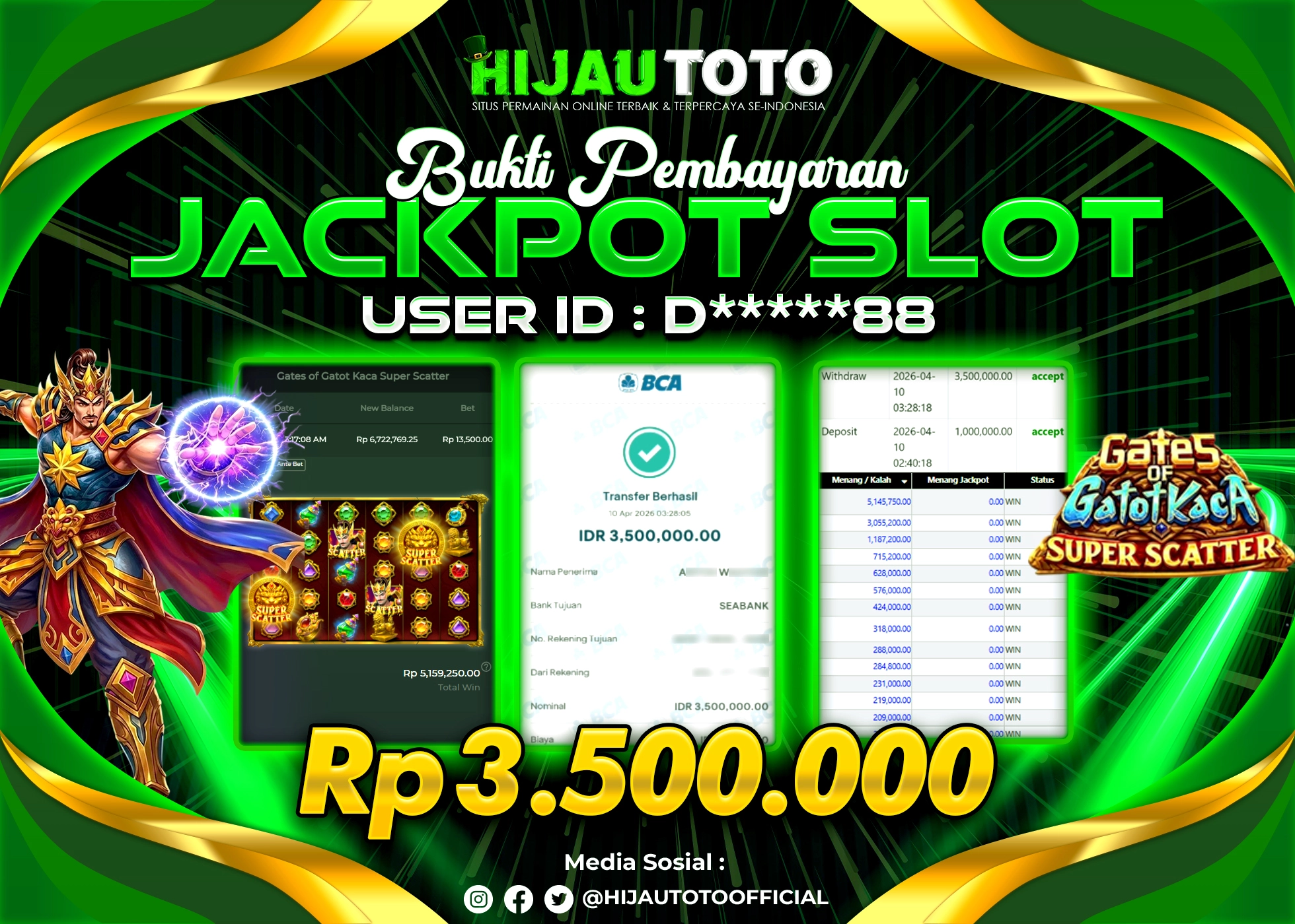 Selamat datang di HIJAUTOTO, tempatnya seru-seruan dan cuan besar! Mulai main cukup dengan modal Rp5.000 aja, taruhan super murah dari Rp100 perak! Mau main slot yang penuh warna? Atau togel dari 20 pasaran paling hits? Atau mungkin tembak ikan yang bikin deg-degan? Tenang, ada juga taruhan bola, sabung ayam, dan live casino yang bikin suasana makin hidup! Daftar sekarang dan dapetin bonus new member 100% langsung, biar modalmu makin tebal. Deposit gampang banget, bisa pakai QRIS, dan kalau butuh bantuan, customer service kita siap 24 jam nonstop. Jadi, tunggu apa lagi? Yuk, gabung dan bawa pulang kemenangannya cuma di HIJAUTOTO!