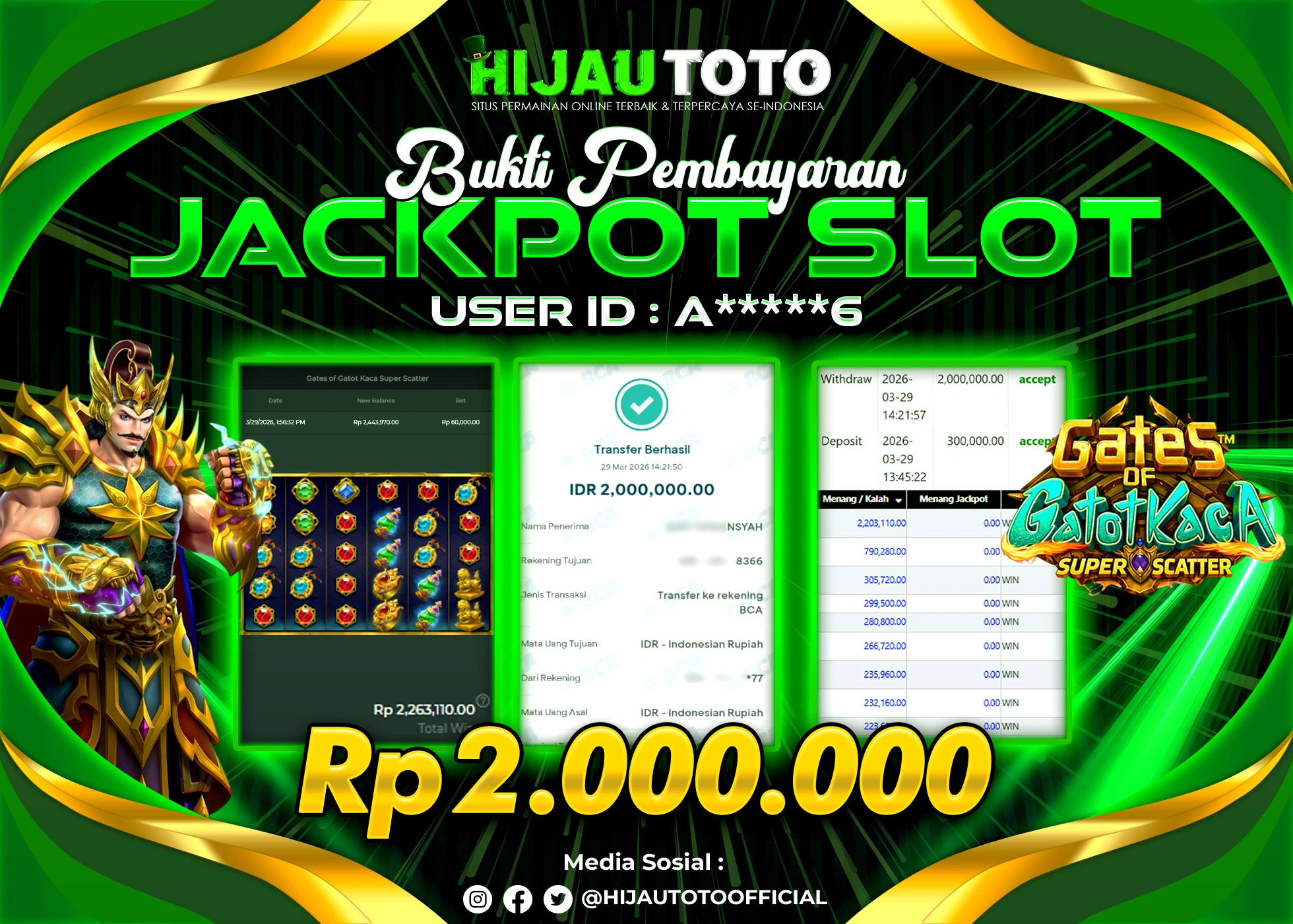 Selamat datang di HIJAUTOTO, tempatnya seru-seruan dan cuan besar! Mulai main cukup dengan modal Rp5.000 aja, taruhan super murah dari Rp100 perak! Mau main slot yang penuh warna? Atau togel dari 20 pasaran paling hits? Atau mungkin tembak ikan yang bikin deg-degan? Tenang, ada juga taruhan bola, sabung ayam, dan live casino yang bikin suasana makin hidup! Daftar sekarang dan dapetin bonus new member 100% langsung, biar modalmu makin tebal. Deposit gampang banget, bisa pakai QRIS, dan kalau butuh bantuan, customer service kita siap 24 jam nonstop. Jadi, tunggu apa lagi? Yuk, gabung dan bawa pulang kemenangannya cuma di HIJAUTOTO!