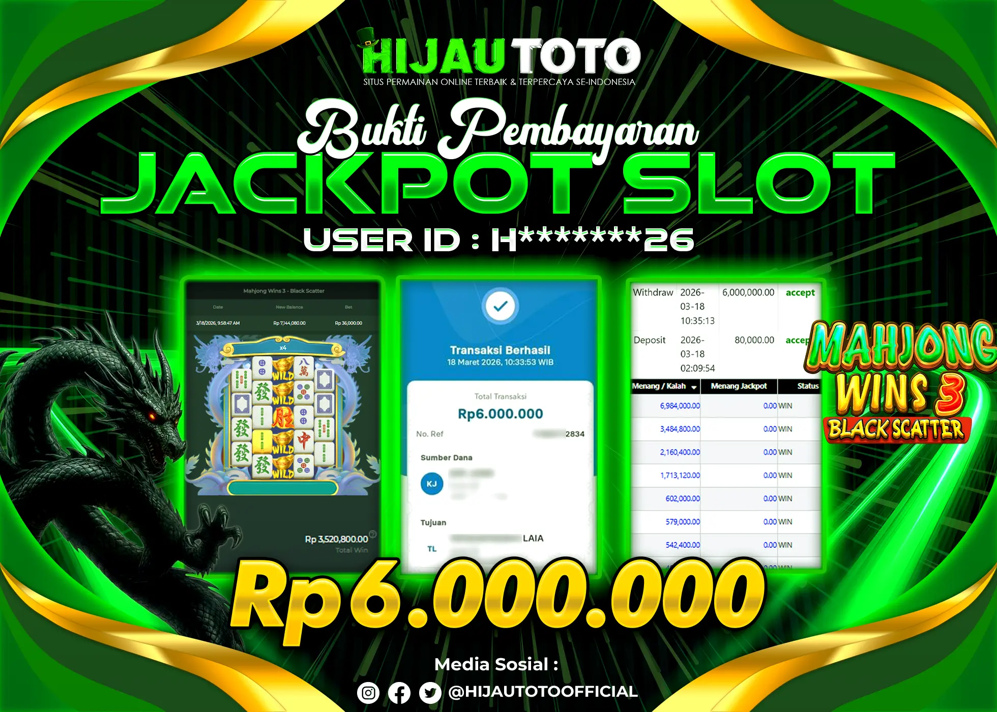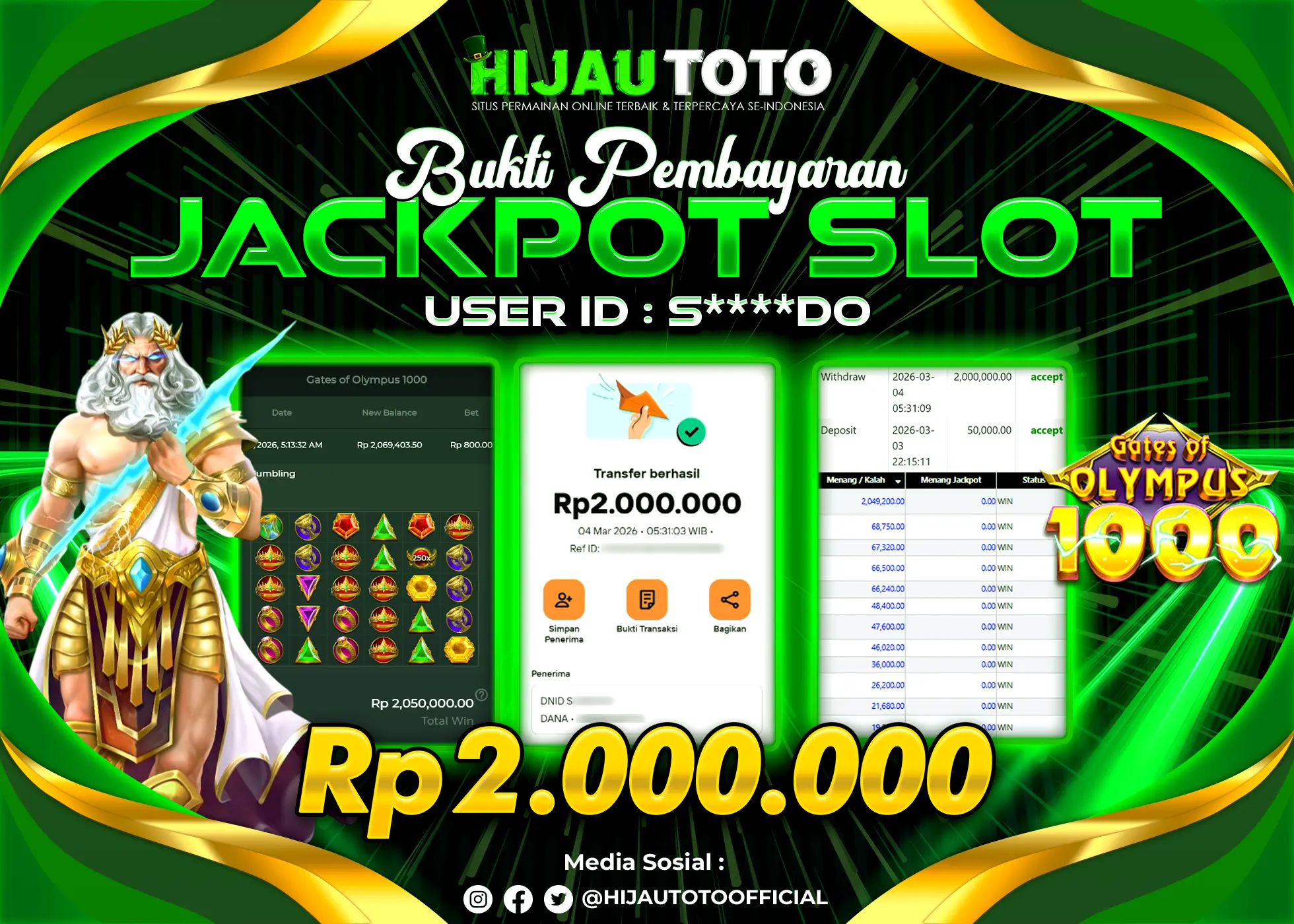 Bergabung dengan HIJAUTOTO sangat mudah dan cepat. Cukup lakukan pendaftaran dengan data lengkap, lakukan deposit minimal Rp5.000 melalui berbagai metode termasuk QRIS, dan mulai bertaruh dengan minimal taruhan Rp100. Dapatkan juga bonus new member 100% untuk modal bermain lebih besar.