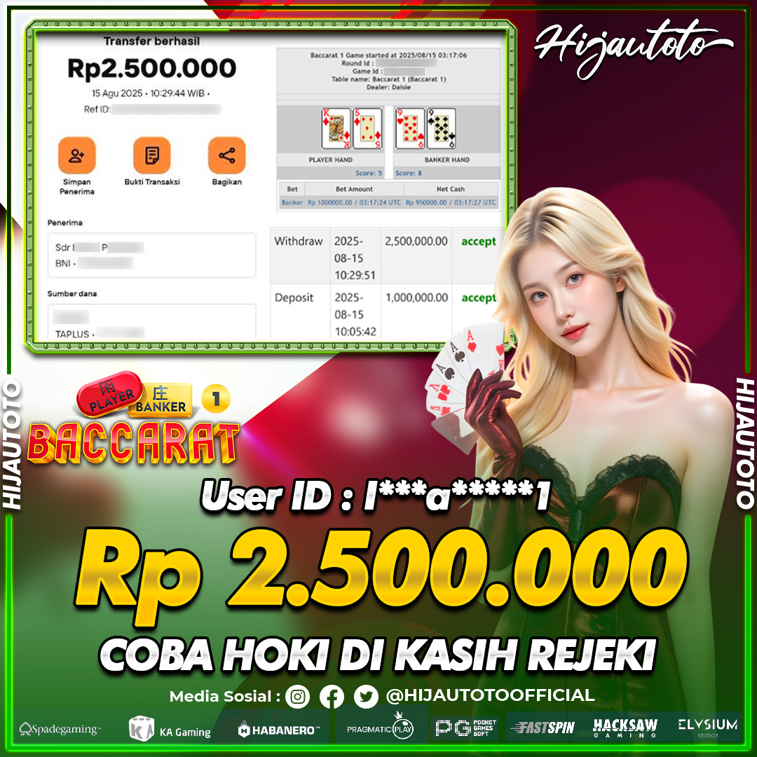 Selamat datang di HIJAUTOTO, tempatnya seru-seruan dan cuan besar! Mulai main cukup dengan modal Rp5.000 aja, taruhan super murah dari Rp100 perak! Mau main slot yang penuh warna? Atau togel dari 20 pasaran paling hits? Atau mungkin tembak ikan yang bikin deg-degan? Tenang, ada juga taruhan bola, sabung ayam, dan live casino yang bikin suasana makin hidup! Daftar sekarang dan dapetin bonus new member 100% langsung, biar modalmu makin tebal. Deposit gampang banget, bisa pakai QRIS, dan kalau butuh bantuan, customer service kita siap 24 jam nonstop. Jadi, tunggu apa lagi? Yuk, gabung dan bawa pulang kemenangannya cuma di HIJAUTOTO!