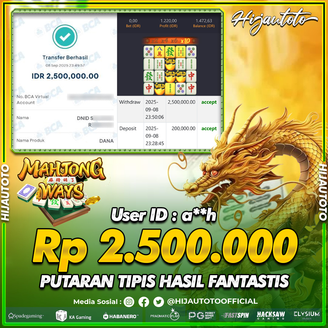 Selamat datang di HIJAUTOTO, tempatnya seru-seruan dan cuan besar! Mulai main cukup dengan modal Rp5.000 aja, taruhan super murah dari Rp100 perak! Mau main slot yang penuh warna? Atau togel dari 20 pasaran paling hits? Atau mungkin tembak ikan yang bikin deg-degan? Tenang, ada juga taruhan bola, sabung ayam, dan live casino yang bikin suasana makin hidup! Daftar sekarang dan dapetin bonus new member 100% langsung, biar modalmu makin tebal. Deposit gampang banget, bisa pakai QRIS, dan kalau butuh bantuan, customer service kita siap 24 jam nonstop. Jadi, tunggu apa lagi? Yuk, gabung dan bawa pulang kemenangannya cuma di HIJAUTOTO!