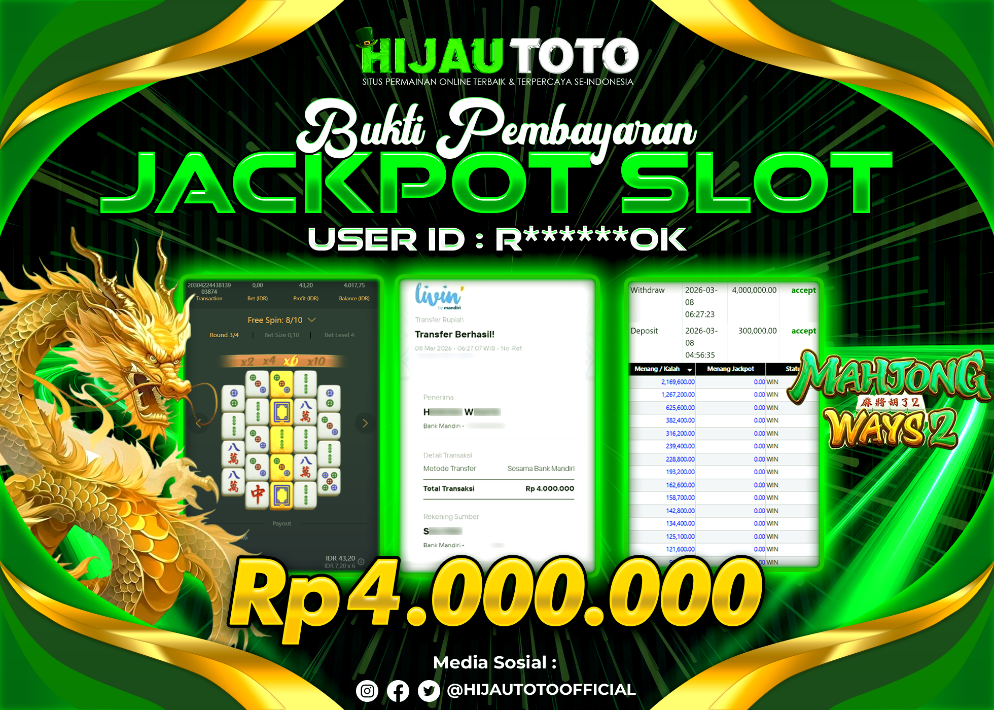 Selamat datang di HIJAUTOTO, tempatnya seru-seruan dan cuan besar! Mulai main cukup dengan modal Rp5.000 aja, taruhan super murah dari Rp100 perak! Mau main slot yang penuh warna? Atau togel dari 20 pasaran paling hits? Atau mungkin tembak ikan yang bikin deg-degan? Tenang, ada juga taruhan bola, sabung ayam, dan live casino yang bikin suasana makin hidup! Daftar sekarang dan dapetin bonus new member 100% langsung, biar modalmu makin tebal. Deposit gampang banget, bisa pakai QRIS, dan kalau butuh bantuan, customer service kita siap 24 jam nonstop. Jadi, tunggu apa lagi? Yuk, gabung dan bawa pulang kemenangannya cuma di HIJAUTOTO!