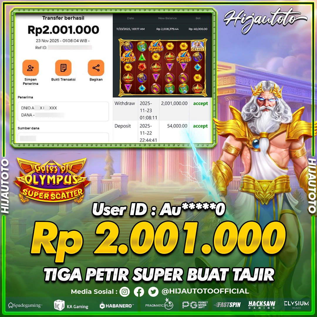 Karena berhasil memenangkan Rp.Rp.3.800.000 dari permainan seru SLOT GATES OF OLYMPUS 1000 di HIJAUTOTO! πŸ’°πŸ’Έ