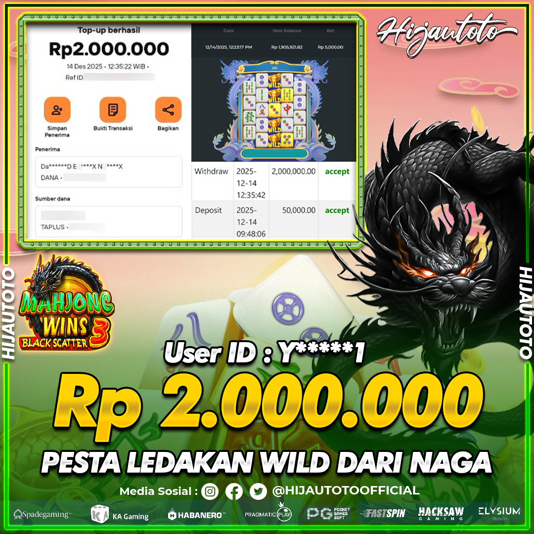 Selamat Kepada Member HIJAUTOTO Y*****1 Telah Jackpot Di SLOT MAHJONG WAYS 2