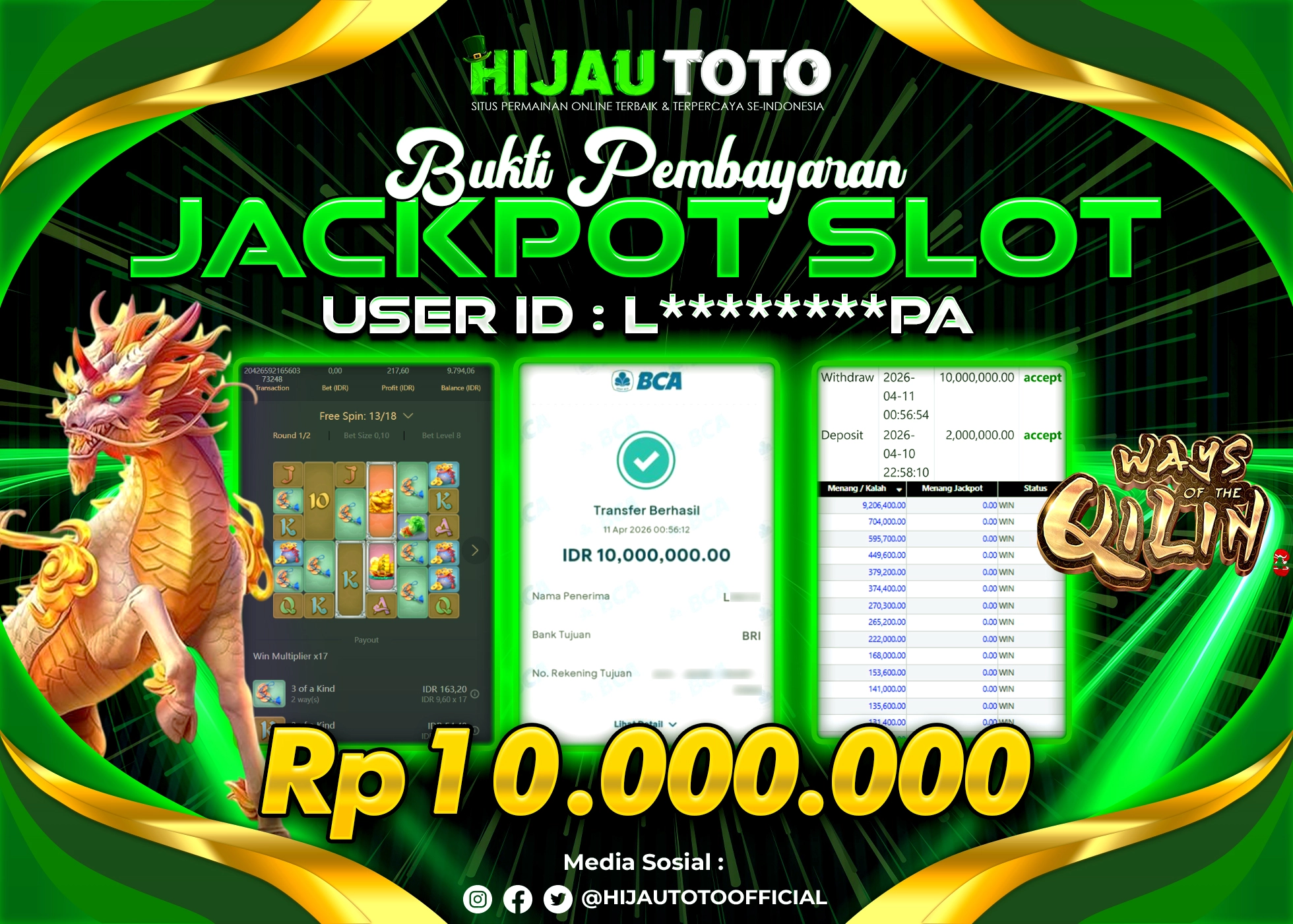 Selamat datang di HIJAUTOTO, tempatnya seru-seruan dan cuan besar! Mulai main cukup dengan modal Rp5.000 aja, taruhan super murah dari Rp100 perak! Mau main slot yang penuh warna? Atau togel dari 20 pasaran paling hits? Atau mungkin tembak ikan yang bikin deg-degan? Tenang, ada juga taruhan bola, sabung ayam, dan live casino yang bikin suasana makin hidup! Daftar sekarang dan dapetin bonus new member 100% langsung, biar modalmu makin tebal. Deposit gampang banget, bisa pakai QRIS, dan kalau butuh bantuan, customer service kita siap 24 jam nonstop. Jadi, tunggu apa lagi? Yuk, gabung dan bawa pulang kemenangannya cuma di HIJAUTOTO!