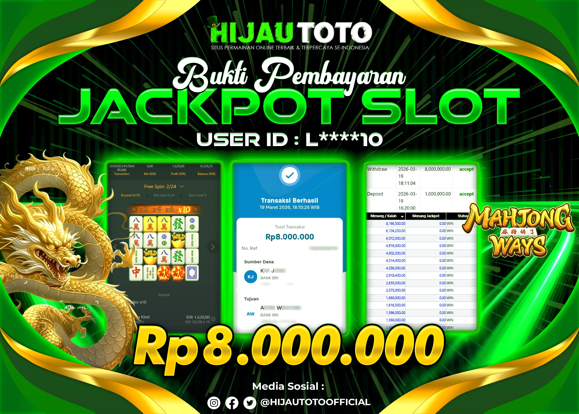 Bergabung dengan HIJAUTOTO sangat mudah dan cepat. Cukup lakukan pendaftaran dengan data lengkap, lakukan deposit minimal Rp5.000 melalui berbagai metode termasuk QRIS, dan mulai bertaruh dengan minimal taruhan Rp100. Dapatkan juga bonus new member 100% untuk modal bermain lebih besar.
