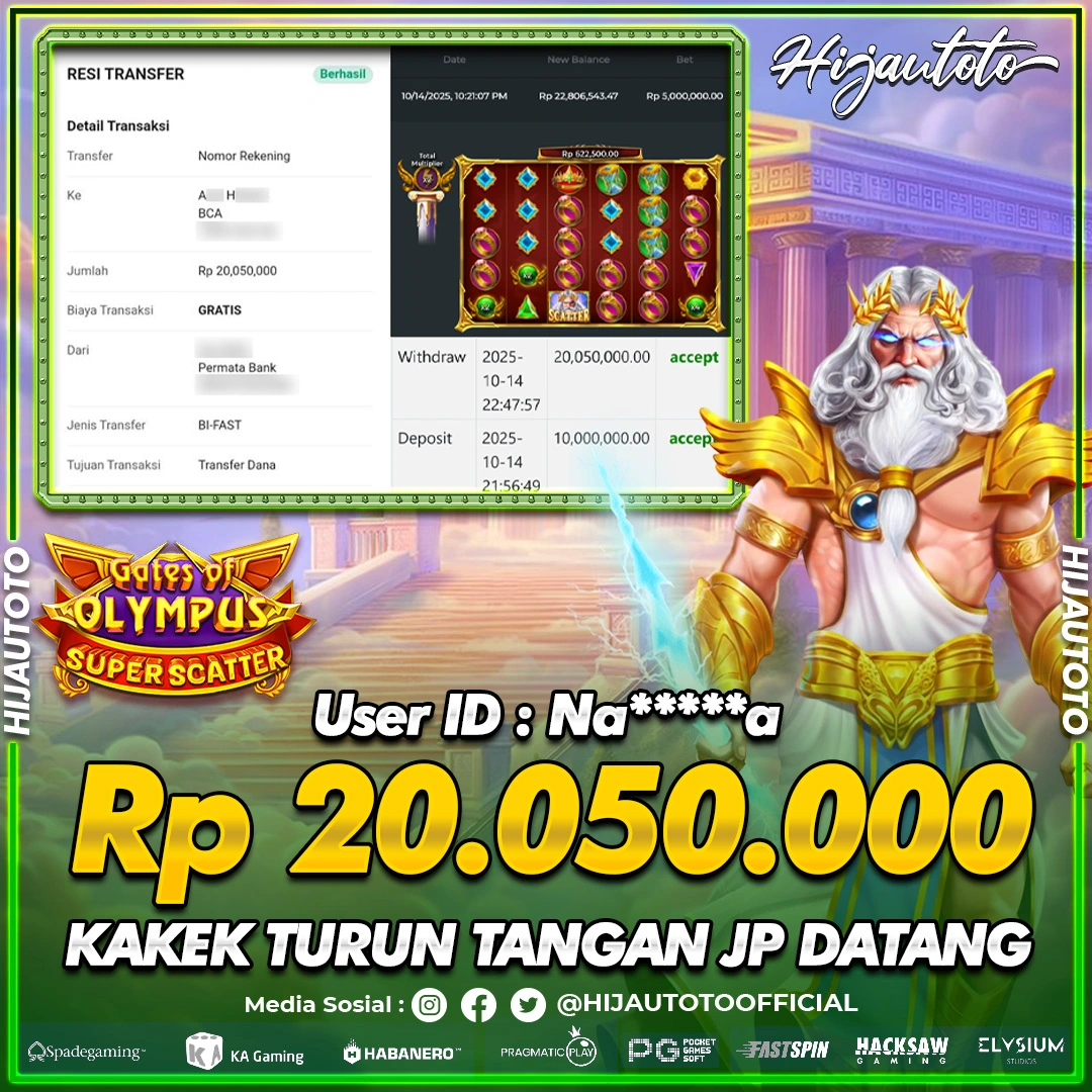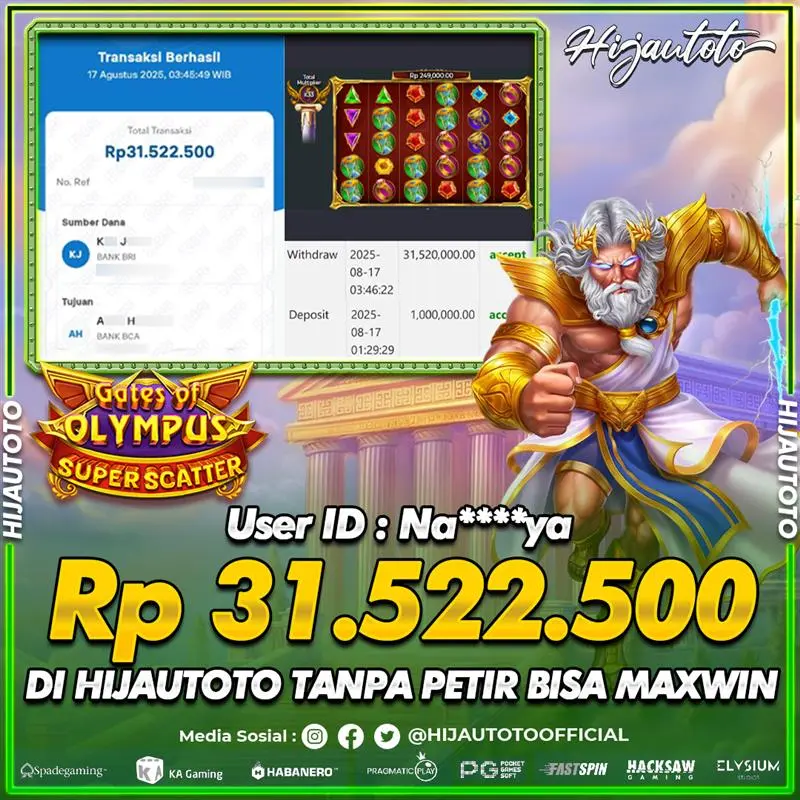 Cuma di HIJAUTOTO, tempat paling AMAN, CEPAT, & TERPERCAYA buat pecinta game SLOT GATES OF OLYMPUS 1000!