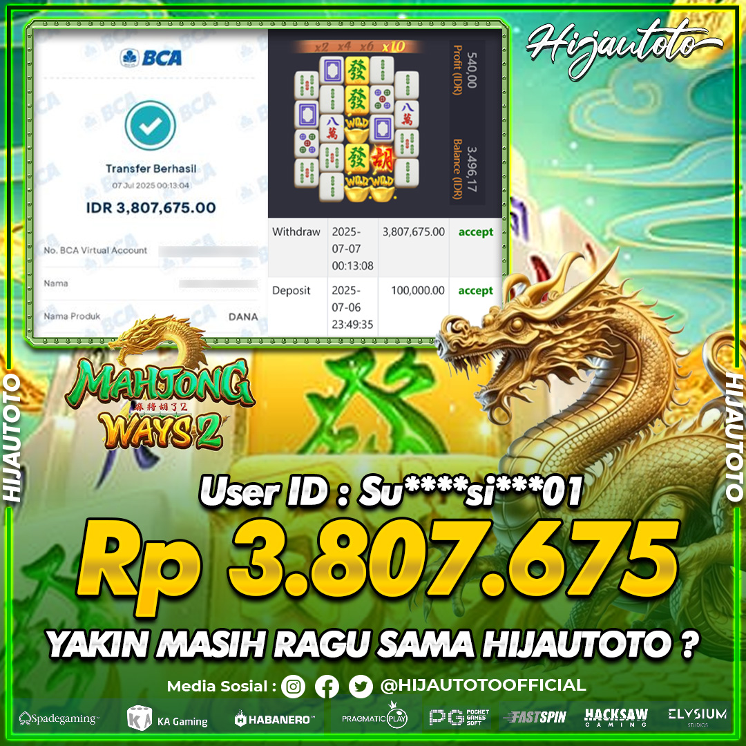 Selamat datang di HIJAUTOTO, tempatnya seru-seruan dan cuan besar! Mulai main cukup dengan modal Rp5.000 aja, taruhan super murah dari Rp100 perak! Mau main slot yang penuh warna? Atau togel dari 20 pasaran paling hits? Atau mungkin tembak ikan yang bikin deg-degan? Tenang, ada juga taruhan bola, sabung ayam, dan live casino yang bikin suasana makin hidup! Daftar sekarang dan dapetin bonus new member 100% langsung, biar modalmu makin tebal. Deposit gampang banget, bisa pakai QRIS, dan kalau butuh bantuan, customer service kita siap 24 jam nonstop. Jadi, tunggu apa lagi? Yuk, gabung dan bawa pulang kemenangannya cuma di HIJAUTOTO!