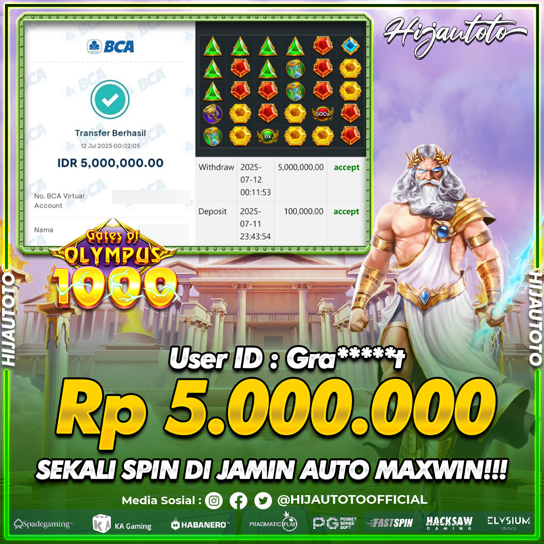 Cuma di HIJAUTOTO, tempat paling AMAN, CEPAT, & TERPERCAYA buat pecinta game SLOT GATES OF OLYMPUS SUPER SCATTER!
