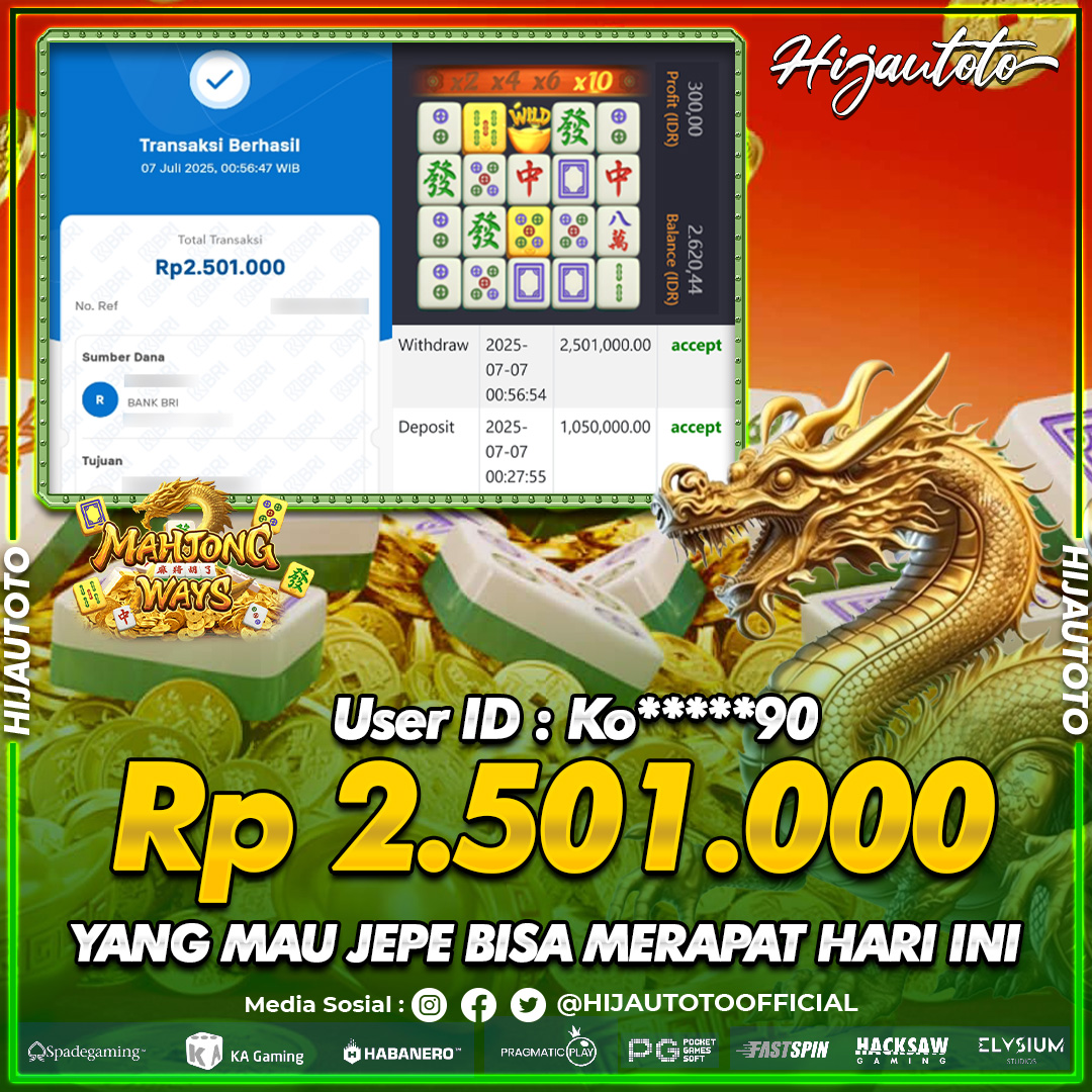 Selamat datang di HIJAUTOTO, tempatnya seru-seruan dan cuan besar! Mulai main cukup dengan modal Rp5.000 aja, taruhan super murah dari Rp100 perak! Mau main slot yang penuh warna? Atau togel dari 20 pasaran paling hits? Atau mungkin tembak ikan yang bikin deg-degan? Tenang, ada juga taruhan bola, sabung ayam, dan live casino yang bikin suasana makin hidup! Daftar sekarang dan dapetin bonus new member 100% langsung, biar modalmu makin tebal. Deposit gampang banget, bisa pakai QRIS, dan kalau butuh bantuan, customer service kita siap 24 jam nonstop. Jadi, tunggu apa lagi? Yuk, gabung dan bawa pulang kemenangannya cuma di HIJAUTOTO!