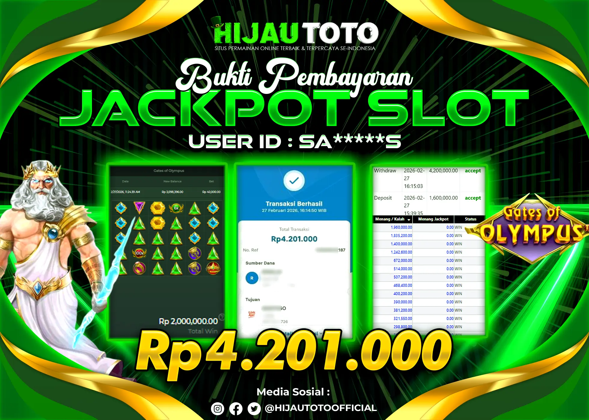 Selamat datang di HIJAUTOTO, tempatnya seru-seruan dan cuan besar! Mulai main cukup dengan modal Rp5.000 aja, taruhan super murah dari Rp100 perak! Mau main slot yang penuh warna? Atau togel dari 20 pasaran paling hits? Atau mungkin tembak ikan yang bikin deg-degan? Tenang, ada juga taruhan bola, sabung ayam, dan live casino yang bikin suasana makin hidup! Daftar sekarang dan dapetin bonus new member 100% langsung, biar modalmu makin tebal. Deposit gampang banget, bisa pakai QRIS, dan kalau butuh bantuan, customer service kita siap 24 jam nonstop. Jadi, tunggu apa lagi? Yuk, gabung dan bawa pulang kemenangannya cuma di HIJAUTOTO!