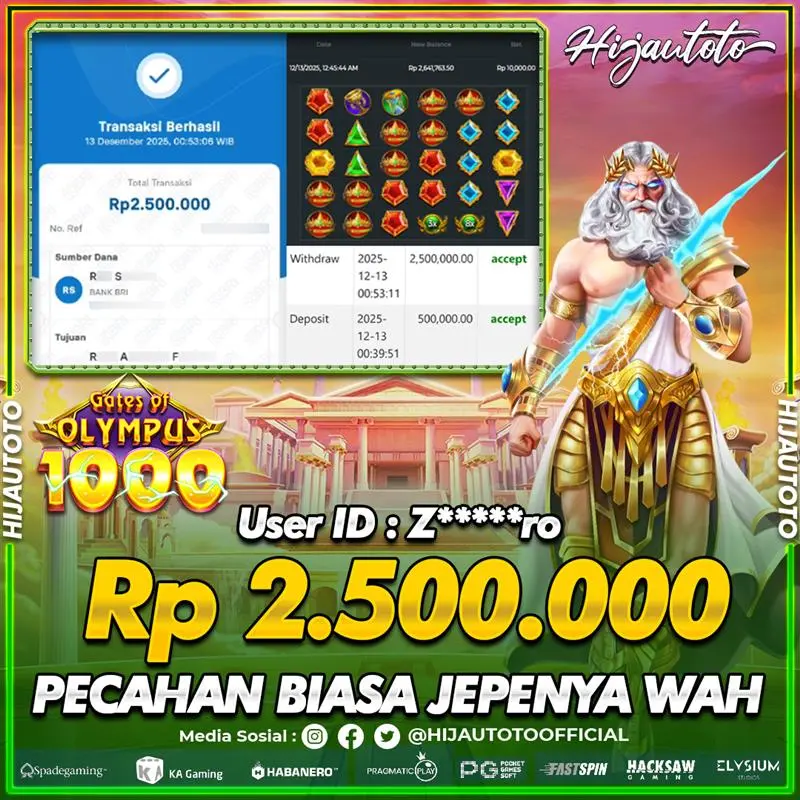 β¨ JACKPOT DI SLOT GATES OF OLYMPUS 1000 β¨