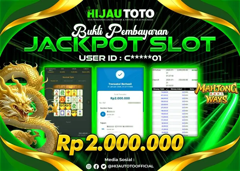 Selamat Kepada Member HIJAUTOTO C*****01 Telah Jackpot Di SLOT MAHJONG WAYS 2