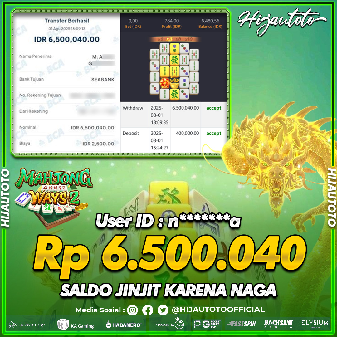 Selamat datang di HIJAUTOTO, tempatnya seru-seruan dan cuan besar! Mulai main cukup dengan modal Rp5.000 aja, taruhan super murah dari Rp100 perak! Mau main slot yang penuh warna? Atau togel dari 20 pasaran paling hits? Atau mungkin tembak ikan yang bikin deg-degan? Tenang, ada juga taruhan bola, sabung ayam, dan live casino yang bikin suasana makin hidup! Daftar sekarang dan dapetin bonus new member 100% langsung, biar modalmu makin tebal. Deposit gampang banget, bisa pakai QRIS, dan kalau butuh bantuan, customer service kita siap 24 jam nonstop. Jadi, tunggu apa lagi? Yuk, gabung dan bawa pulang kemenangannya cuma di HIJAUTOTO!