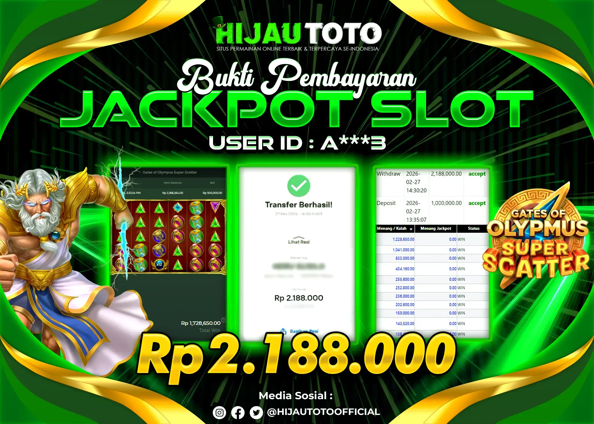 Selamat datang di HIJAUTOTO, tempatnya seru-seruan dan cuan besar! Mulai main cukup dengan modal Rp5.000 aja, taruhan super murah dari Rp100 perak! Mau main slot yang penuh warna? Atau togel dari 20 pasaran paling hits? Atau mungkin tembak ikan yang bikin deg-degan? Tenang, ada juga taruhan bola, sabung ayam, dan live casino yang bikin suasana makin hidup! Daftar sekarang dan dapetin bonus new member 100% langsung, biar modalmu makin tebal. Deposit gampang banget, bisa pakai QRIS, dan kalau butuh bantuan, customer service kita siap 24 jam nonstop. Jadi, tunggu apa lagi? Yuk, gabung dan bawa pulang kemenangannya cuma di HIJAUTOTO!