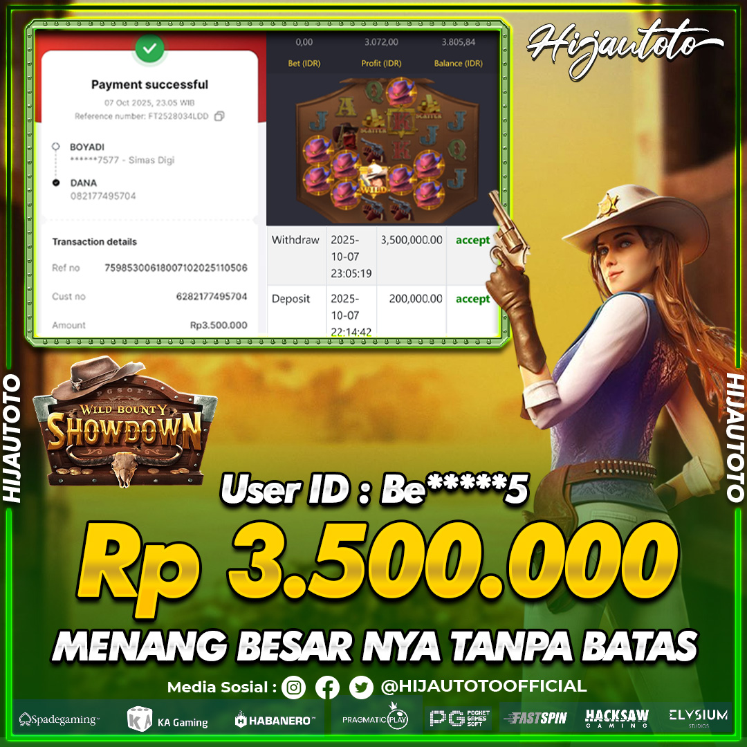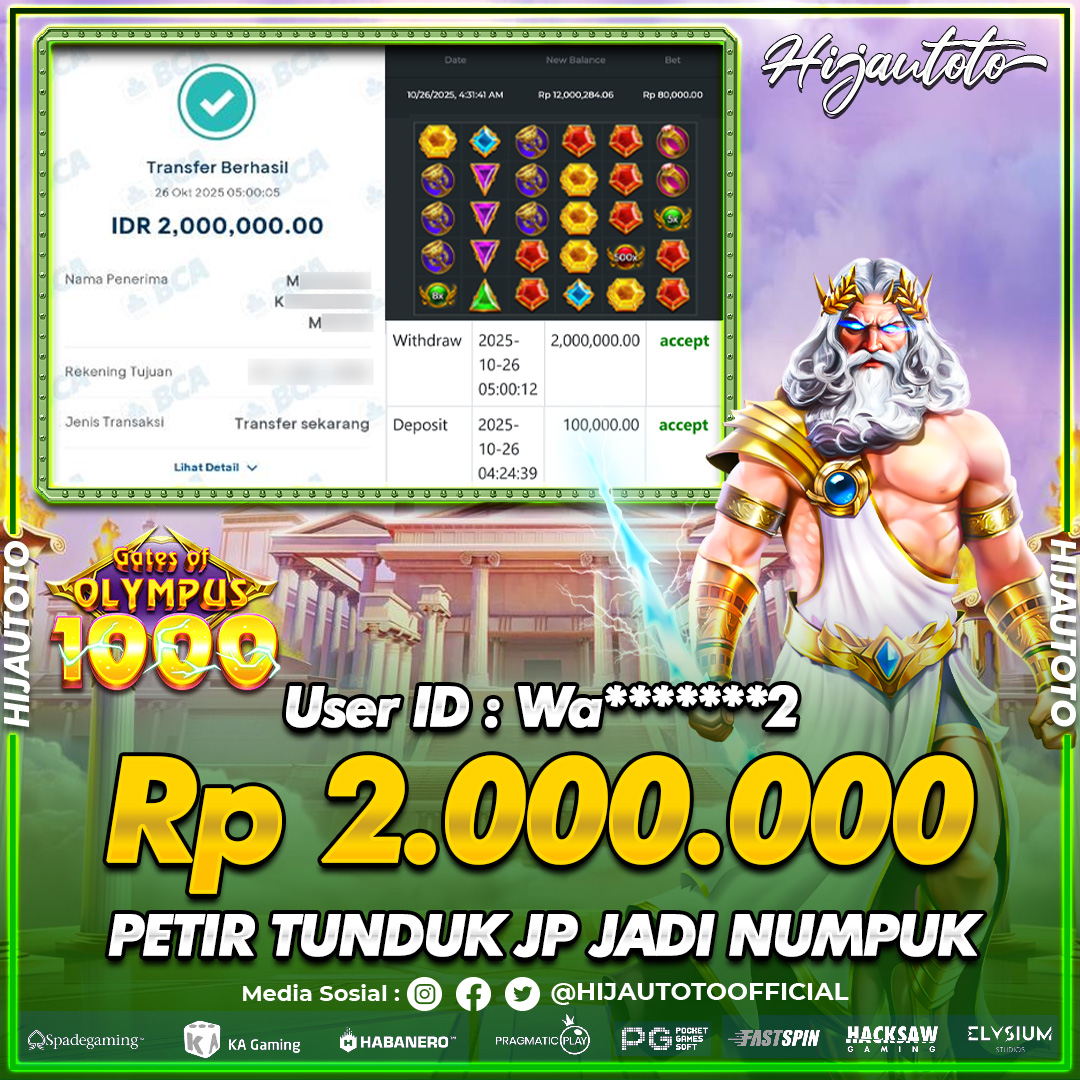 Selamat datang di HIJAUTOTO, tempatnya seru-seruan dan cuan besar! Mulai main cukup dengan modal Rp5.000 aja, taruhan super murah dari Rp100 perak! Mau main slot yang penuh warna? Atau togel dari 20 pasaran paling hits? Atau mungkin tembak ikan yang bikin deg-degan? Tenang, ada juga taruhan bola, sabung ayam, dan live casino yang bikin suasana makin hidup! Daftar sekarang dan dapetin bonus new member 100% langsung, biar modalmu makin tebal. Deposit gampang banget, bisa pakai QRIS, dan kalau butuh bantuan, customer service kita siap 24 jam nonstop. Jadi, tunggu apa lagi? Yuk, gabung dan bawa pulang kemenangannya cuma di HIJAUTOTO!