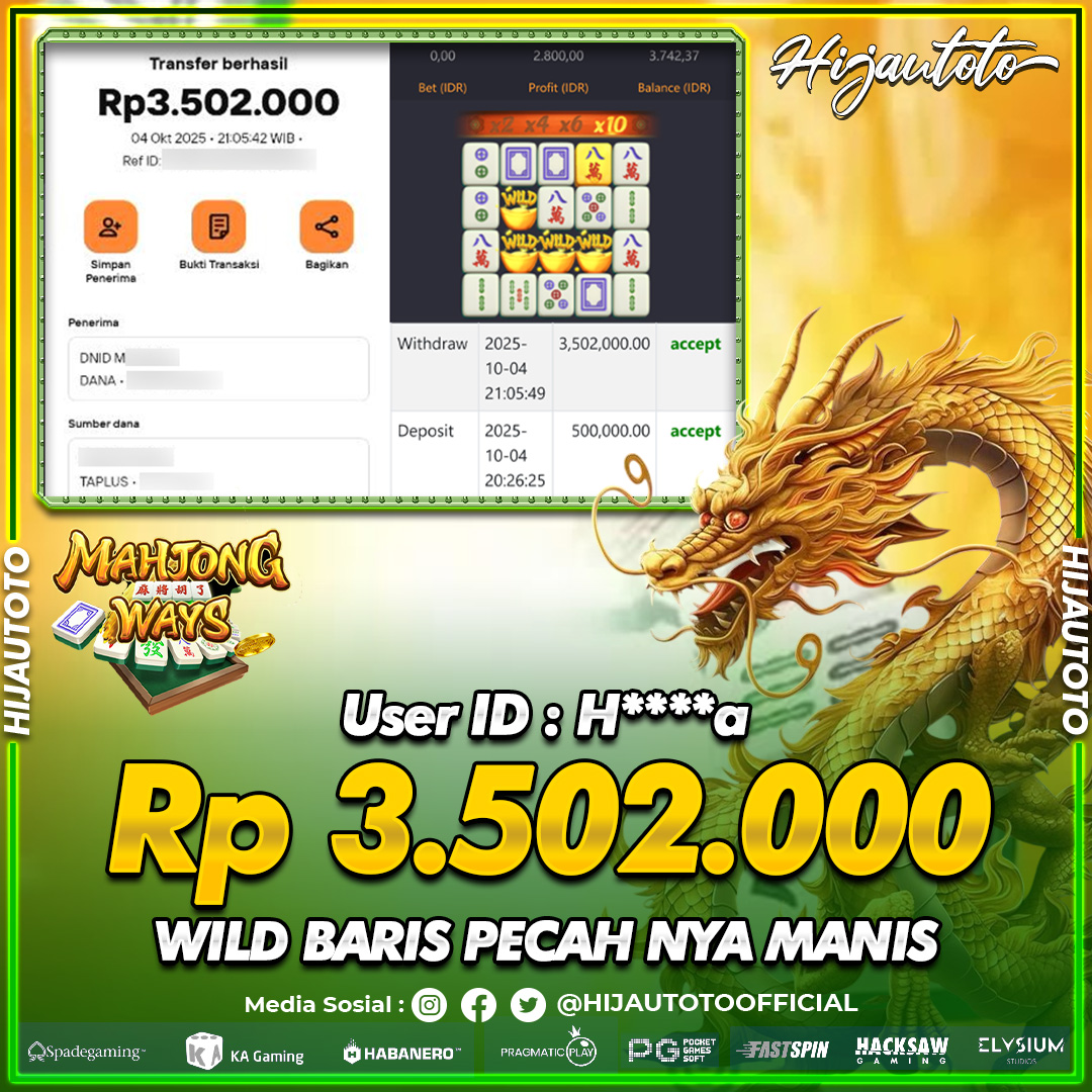 Selamat datang di HIJAUTOTO, tempatnya seru-seruan dan cuan besar! Mulai main cukup dengan modal Rp5.000 aja, taruhan super murah dari Rp100 perak! Mau main slot yang penuh warna? Atau togel dari 20 pasaran paling hits? Atau mungkin tembak ikan yang bikin deg-degan? Tenang, ada juga taruhan bola, sabung ayam, dan live casino yang bikin suasana makin hidup! Daftar sekarang dan dapetin bonus new member 100% langsung, biar modalmu makin tebal. Deposit gampang banget, bisa pakai QRIS, dan kalau butuh bantuan, customer service kita siap 24 jam nonstop. Jadi, tunggu apa lagi? Yuk, gabung dan bawa pulang kemenangannya cuma di HIJAUTOTO!