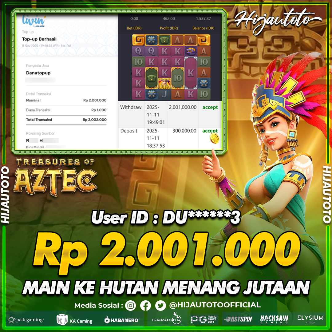 Selamat datang di HIJAUTOTO, tempatnya seru-seruan dan cuan besar! Mulai main cukup dengan modal Rp5.000 aja, taruhan super murah dari Rp100 perak! Mau main slot yang penuh warna? Atau togel dari 20 pasaran paling hits? Atau mungkin tembak ikan yang bikin deg-degan? Tenang, ada juga taruhan bola, sabung ayam, dan live casino yang bikin suasana makin hidup! Daftar sekarang dan dapetin bonus new member 100% langsung, biar modalmu makin tebal. Deposit gampang banget, bisa pakai QRIS, dan kalau butuh bantuan, customer service kita siap 24 jam nonstop. Jadi, tunggu apa lagi? Yuk, gabung dan bawa pulang kemenangannya cuma di HIJAUTOTO!