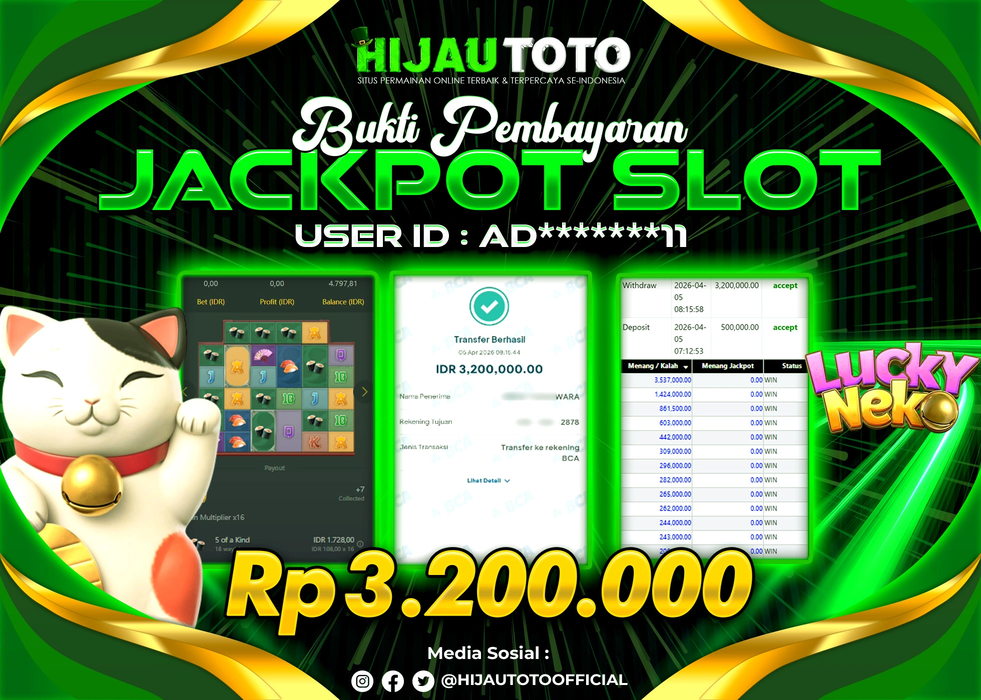Selamat datang di HIJAUTOTO, tempatnya seru-seruan dan cuan besar! Mulai main cukup dengan modal Rp5.000 aja, taruhan super murah dari Rp100 perak! Mau main slot yang penuh warna? Atau togel dari 20 pasaran paling hits? Atau mungkin tembak ikan yang bikin deg-degan? Tenang, ada juga taruhan bola, sabung ayam, dan live casino yang bikin suasana makin hidup! Daftar sekarang dan dapetin bonus new member 100% langsung, biar modalmu makin tebal. Deposit gampang banget, bisa pakai QRIS, dan kalau butuh bantuan, customer service kita siap 24 jam nonstop. Jadi, tunggu apa lagi? Yuk, gabung dan bawa pulang kemenangannya cuma di HIJAUTOTO!