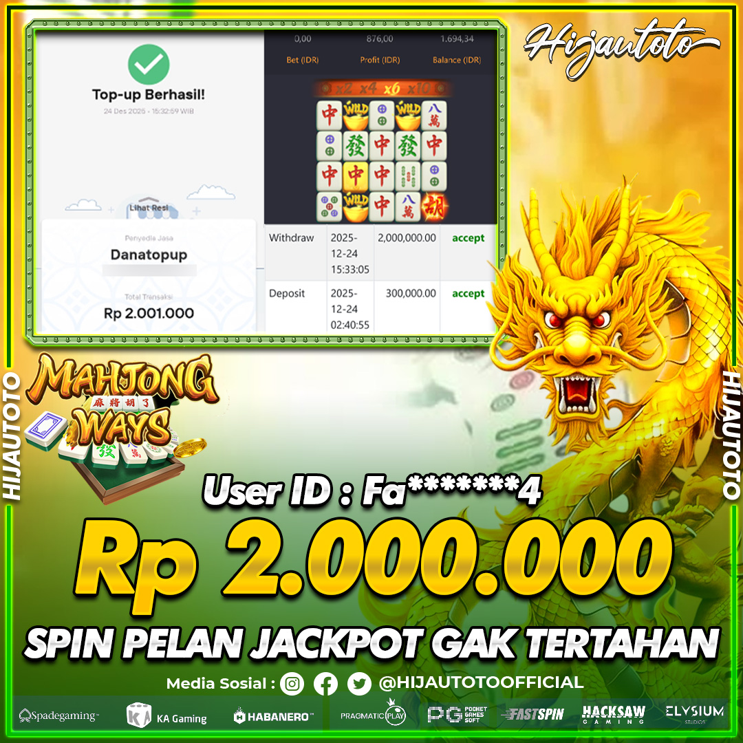 Selamat datang di HIJAUTOTO, tempatnya seru-seruan dan cuan besar! Mulai main cukup dengan modal Rp5.000 aja, taruhan super murah dari Rp100 perak! Mau main slot yang penuh warna? Atau togel dari 20 pasaran paling hits? Atau mungkin tembak ikan yang bikin deg-degan? Tenang, ada juga taruhan bola, sabung ayam, dan live casino yang bikin suasana makin hidup! Daftar sekarang dan dapetin bonus new member 100% langsung, biar modalmu makin tebal. Deposit gampang banget, bisa pakai QRIS, dan kalau butuh bantuan, customer service kita siap 24 jam nonstop. Jadi, tunggu apa lagi? Yuk, gabung dan bawa pulang kemenangannya cuma di HIJAUTOTO!