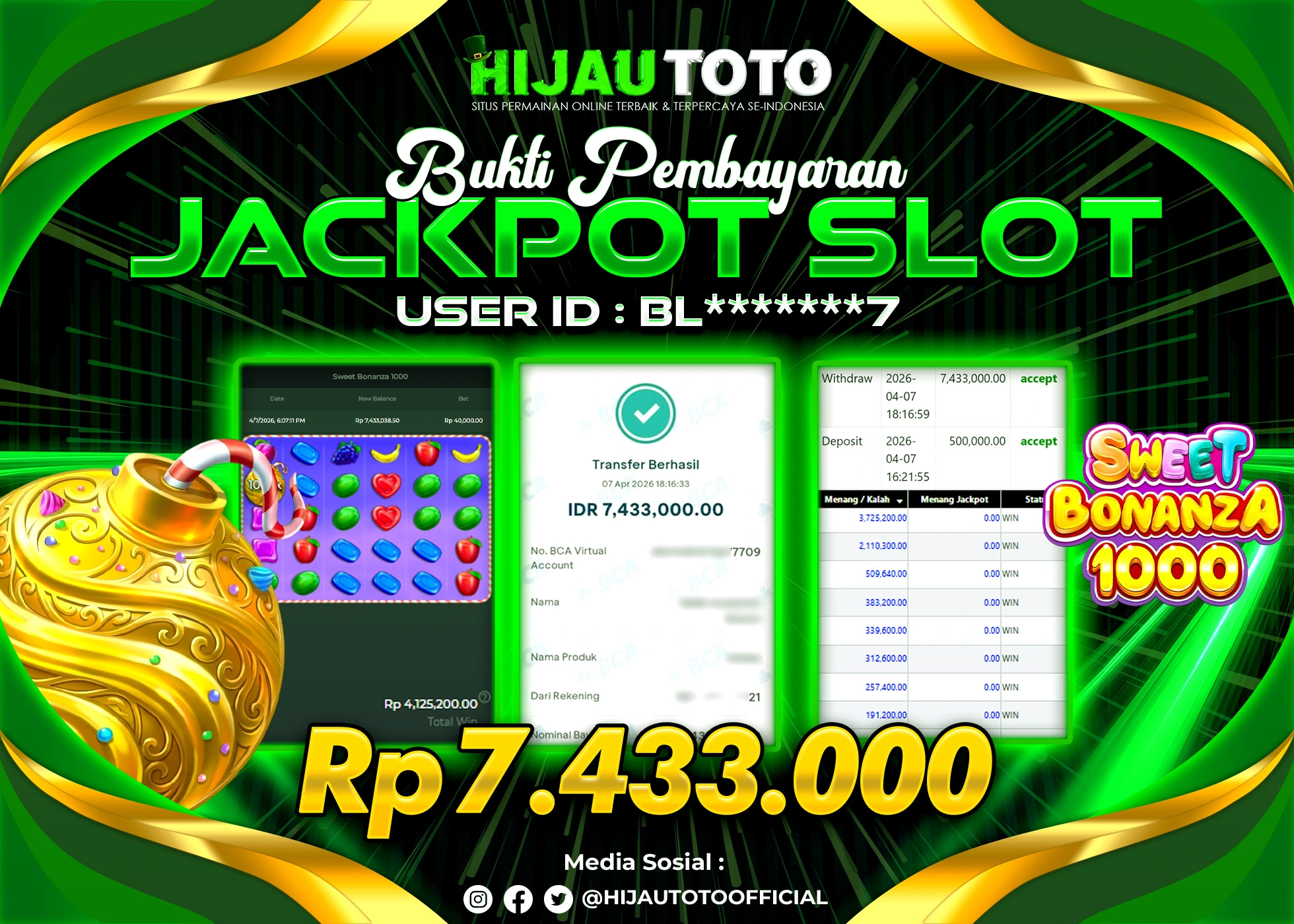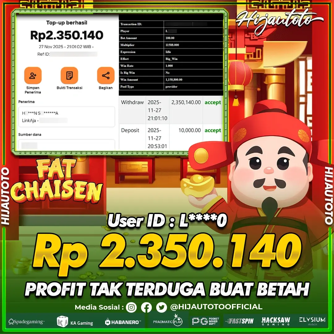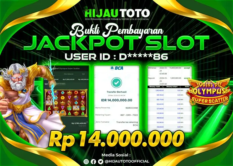 Selamat datang di HIJAUTOTO, tempatnya seru-seruan dan cuan besar! Mulai main cukup dengan modal Rp5.000 aja, taruhan super murah dari Rp100 perak! Mau main slot yang penuh warna? Atau togel dari 20 pasaran paling hits? Atau mungkin tembak ikan yang bikin deg-degan? Tenang, ada juga taruhan bola, sabung ayam, dan live casino yang bikin suasana makin hidup! Daftar sekarang dan dapetin bonus new member 100% langsung, biar modalmu makin tebal. Deposit gampang banget, bisa pakai QRIS, dan kalau butuh bantuan, customer service kita siap 24 jam nonstop. Jadi, tunggu apa lagi? Yuk, gabung dan bawa pulang kemenangannya cuma di HIJAUTOTO!