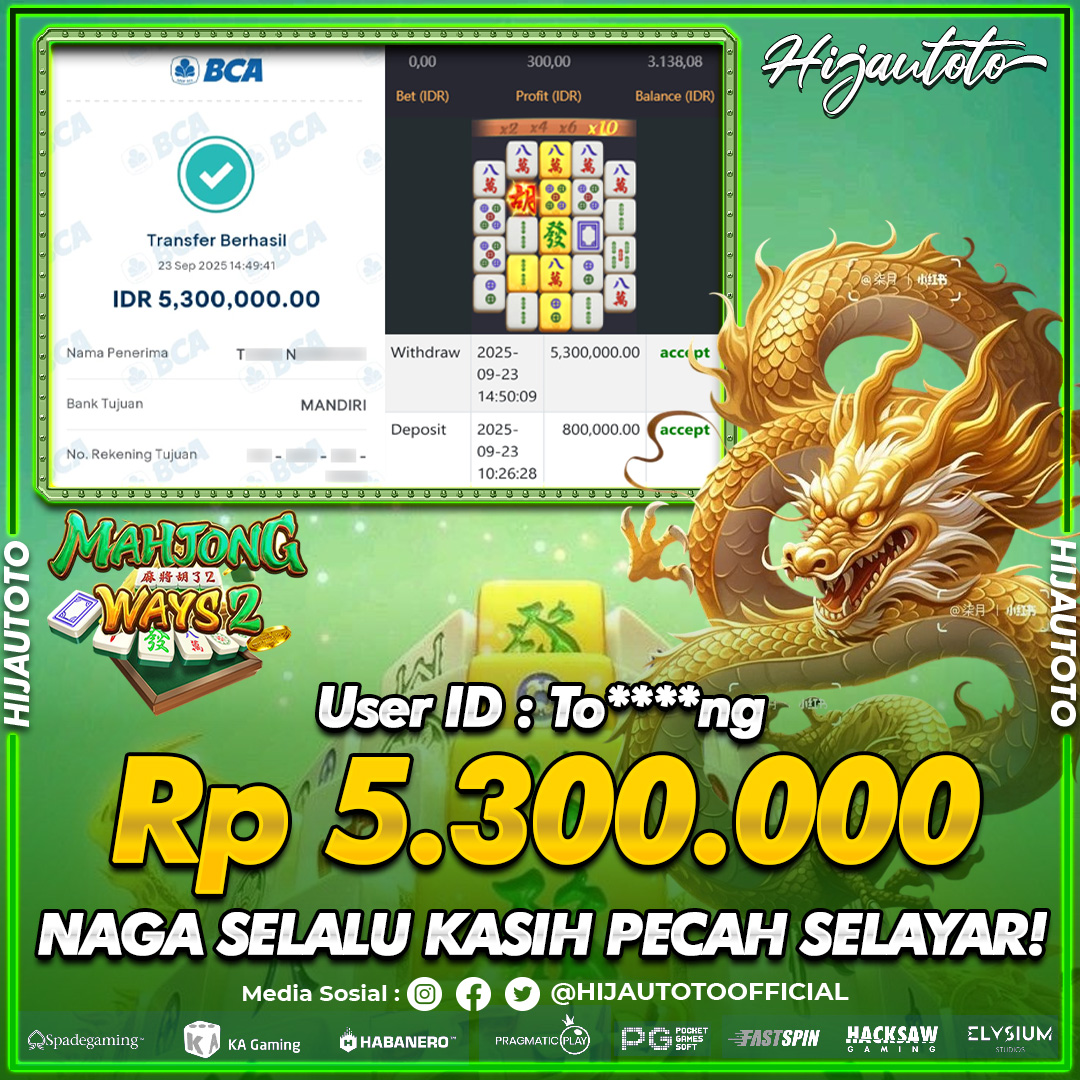 Selamat datang di HIJAUTOTO, tempatnya seru-seruan dan cuan besar! Mulai main cukup dengan modal Rp5.000 aja, taruhan super murah dari Rp100 perak! Mau main slot yang penuh warna? Atau togel dari 20 pasaran paling hits? Atau mungkin tembak ikan yang bikin deg-degan? Tenang, ada juga taruhan bola, sabung ayam, dan live casino yang bikin suasana makin hidup! Daftar sekarang dan dapetin bonus new member 100% langsung, biar modalmu makin tebal. Deposit gampang banget, bisa pakai QRIS, dan kalau butuh bantuan, customer service kita siap 24 jam nonstop. Jadi, tunggu apa lagi? Yuk, gabung dan bawa pulang kemenangannya cuma di HIJAUTOTO!