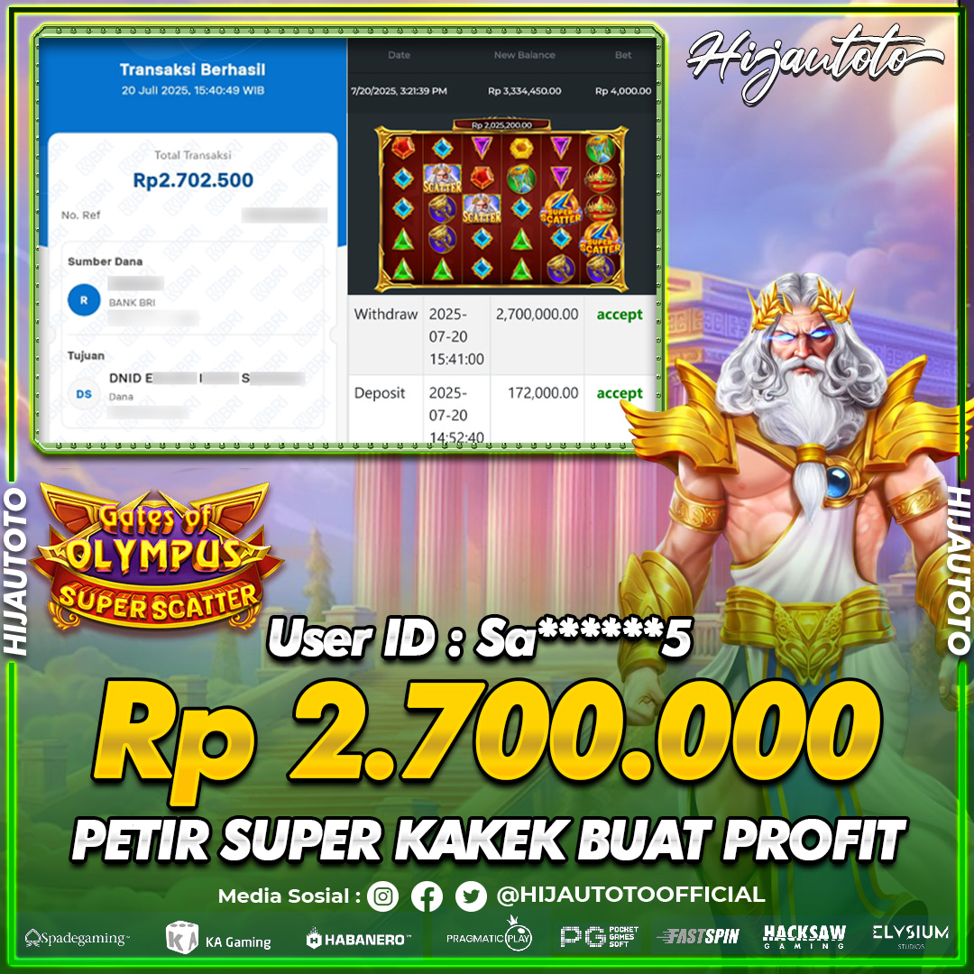 Selamat Kepada Member HIJAUTOTO SA******5 Telah Jackpot Di SLOT GATES OF OLYMPUS SUPER SCATTER