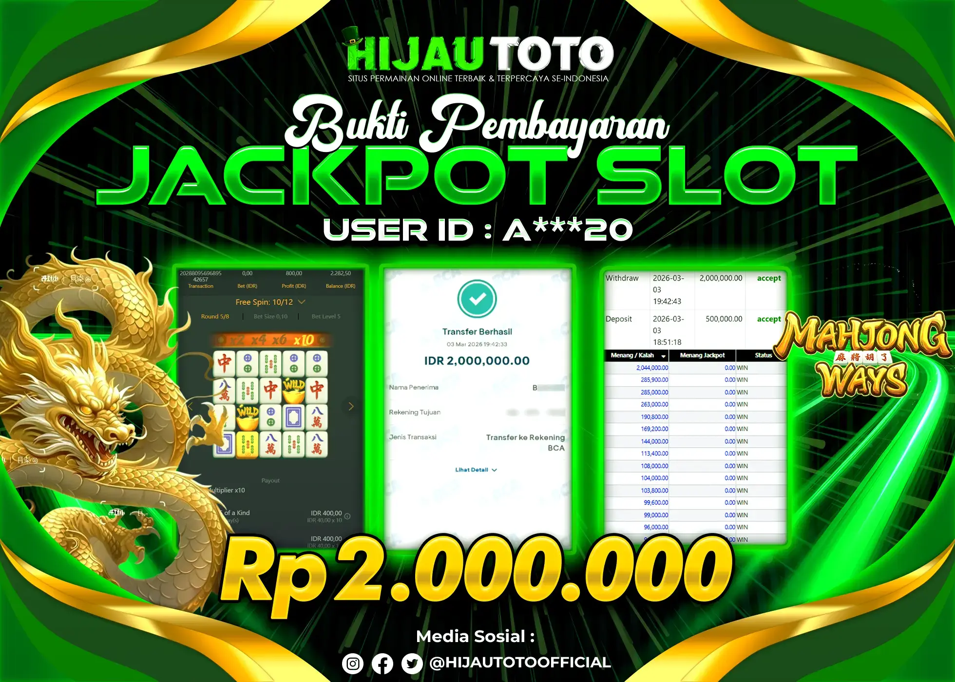 Bergabung dengan HIJAUTOTO sangat mudah dan cepat. Cukup lakukan pendaftaran dengan data lengkap, lakukan deposit minimal Rp5.000 melalui berbagai metode termasuk QRIS, dan mulai bertaruh dengan minimal taruhan Rp100. Dapatkan juga bonus new member 100% untuk modal bermain lebih besar.