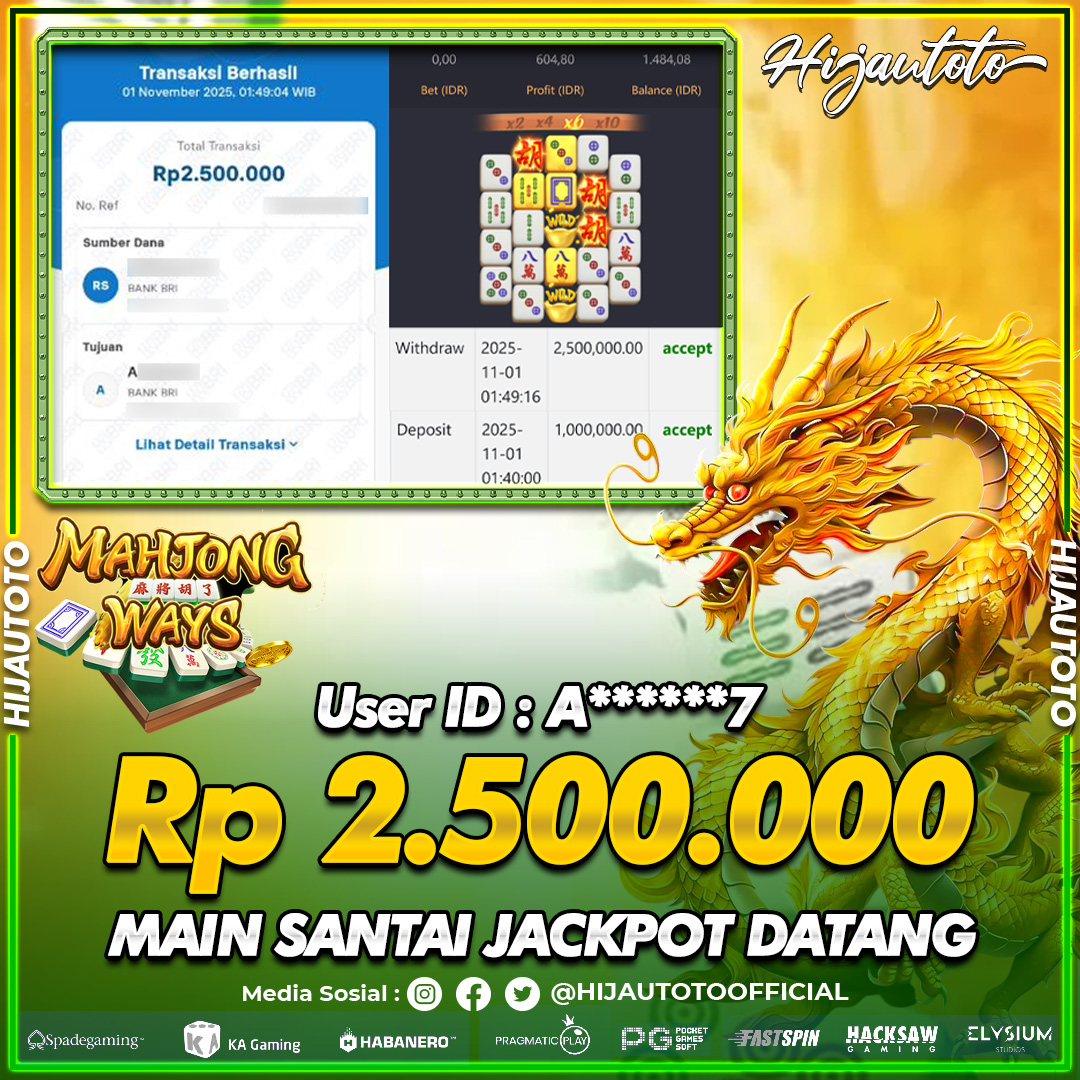 Karena berhasil memenangkan Rp.Rp.2.500.000 dari permainan seru SLOT MAHJONG WAYS di HIJAUTOTO! πŸ’°πŸ’Έ