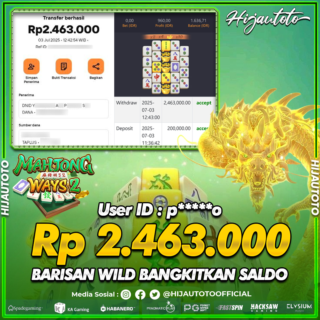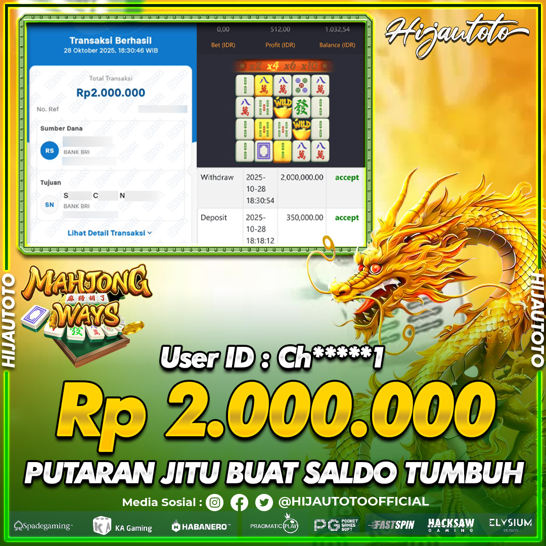 Selamat datang di HIJAUTOTO, tempatnya seru-seruan dan cuan besar! Mulai main cukup dengan modal Rp5.000 aja, taruhan super murah dari Rp100 perak! Mau main slot yang penuh warna? Atau togel dari 20 pasaran paling hits? Atau mungkin tembak ikan yang bikin deg-degan? Tenang, ada juga taruhan bola, sabung ayam, dan live casino yang bikin suasana makin hidup! Daftar sekarang dan dapetin bonus new member 100% langsung, biar modalmu makin tebal. Deposit gampang banget, bisa pakai QRIS, dan kalau butuh bantuan, customer service kita siap 24 jam nonstop. Jadi, tunggu apa lagi? Yuk, gabung dan bawa pulang kemenangannya cuma di HIJAUTOTO!