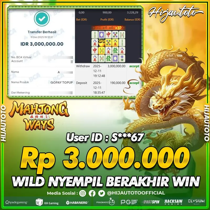 Karena berhasil memenangkan Rp.Rp.2.220.000 dari permainan seru SLOT MAHJONG WAYS di HIJAUTOTO! πŸ’°πŸ’Έ