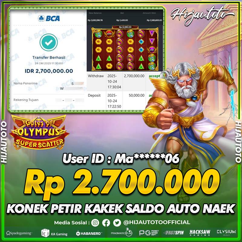 Karena berhasil memenangkan Rp.Rp.4.300.000 dari permainan seru SLOT WISDOM OF ATHENA 1000 di HIJAUTOTO! πŸ’°πŸ’Έ