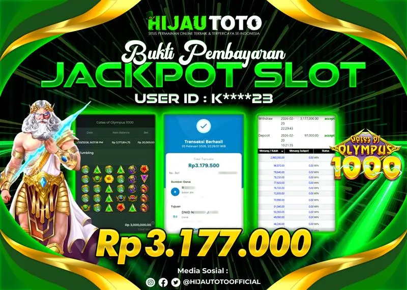 Selamat datang di HIJAUTOTO, tempatnya seru-seruan dan cuan besar! Mulai main cukup dengan modal Rp5.000 aja, taruhan super murah dari Rp100 perak! Mau main slot yang penuh warna? Atau togel dari 20 pasaran paling hits? Atau mungkin tembak ikan yang bikin deg-degan? Tenang, ada juga taruhan bola, sabung ayam, dan live casino yang bikin suasana makin hidup! Daftar sekarang dan dapetin bonus new member 100% langsung, biar modalmu makin tebal. Deposit gampang banget, bisa pakai QRIS, dan kalau butuh bantuan, customer service kita siap 24 jam nonstop. Jadi, tunggu apa lagi? Yuk, gabung dan bawa pulang kemenangannya cuma di HIJAUTOTO!