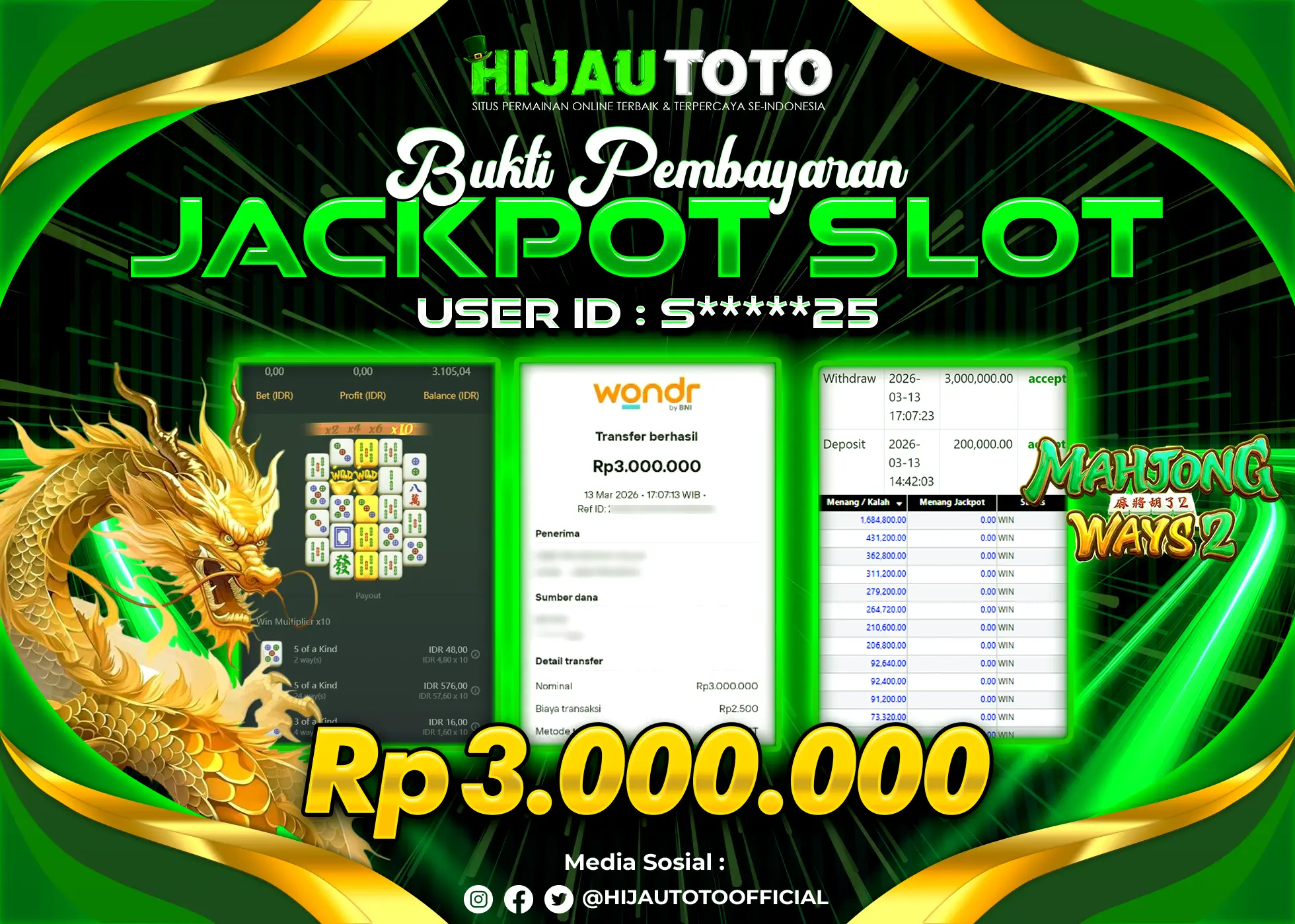 Selamat datang di HIJAUTOTO, tempatnya seru-seruan dan cuan besar! Mulai main cukup dengan modal Rp5.000 aja, taruhan super murah dari Rp100 perak! Mau main slot yang penuh warna? Atau togel dari 20 pasaran paling hits? Atau mungkin tembak ikan yang bikin deg-degan? Tenang, ada juga taruhan bola, sabung ayam, dan live casino yang bikin suasana makin hidup! Daftar sekarang dan dapetin bonus new member 100% langsung, biar modalmu makin tebal. Deposit gampang banget, bisa pakai QRIS, dan kalau butuh bantuan, customer service kita siap 24 jam nonstop. Jadi, tunggu apa lagi? Yuk, gabung dan bawa pulang kemenangannya cuma di HIJAUTOTO!