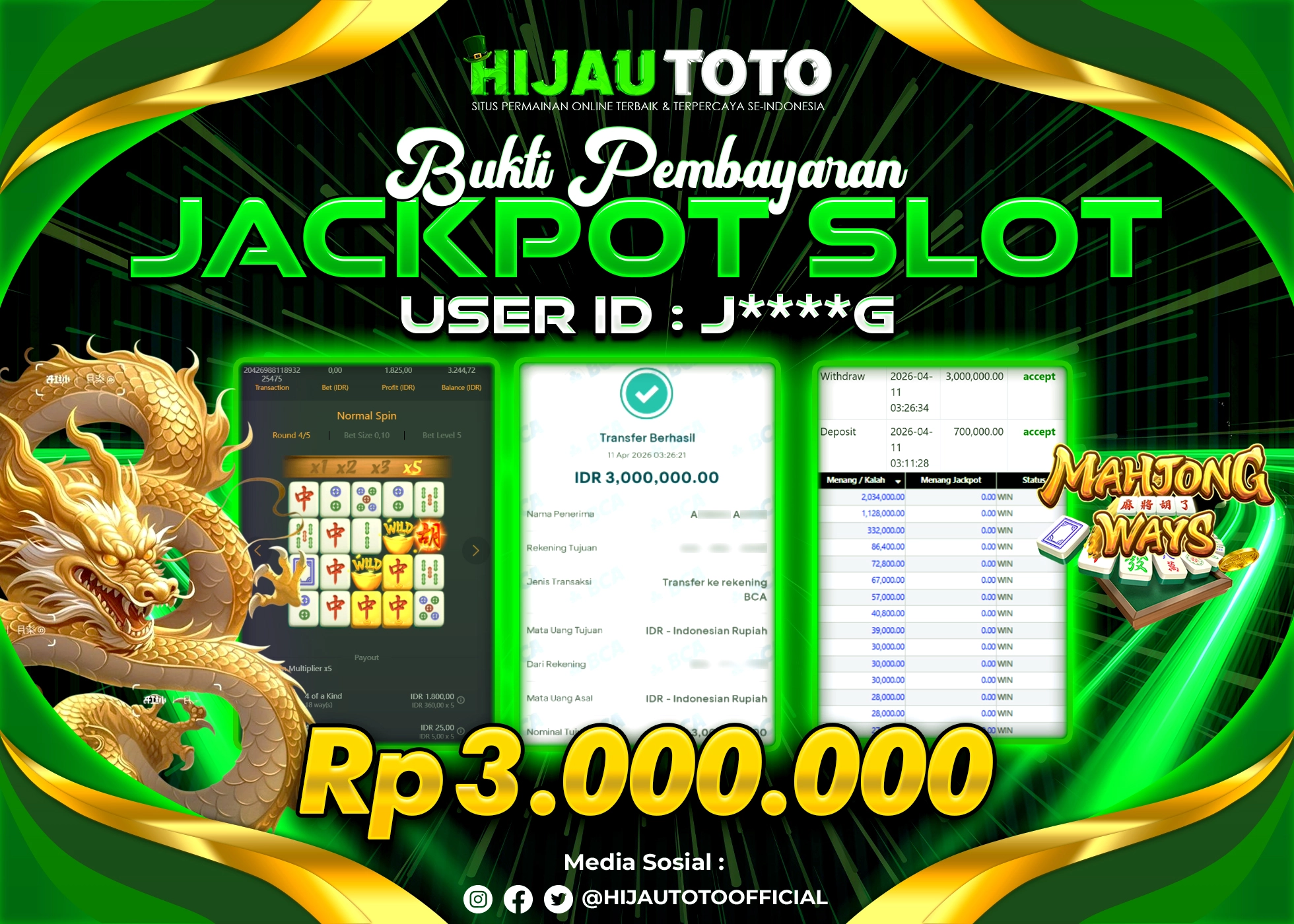 Selamat datang di HIJAUTOTO, tempatnya seru-seruan dan cuan besar! Mulai main cukup dengan modal Rp5.000 aja, taruhan super murah dari Rp100 perak! Mau main slot yang penuh warna? Atau togel dari 20 pasaran paling hits? Atau mungkin tembak ikan yang bikin deg-degan? Tenang, ada juga taruhan bola, sabung ayam, dan live casino yang bikin suasana makin hidup! Daftar sekarang dan dapetin bonus new member 100% langsung, biar modalmu makin tebal. Deposit gampang banget, bisa pakai QRIS, dan kalau butuh bantuan, customer service kita siap 24 jam nonstop. Jadi, tunggu apa lagi? Yuk, gabung dan bawa pulang kemenangannya cuma di HIJAUTOTO!